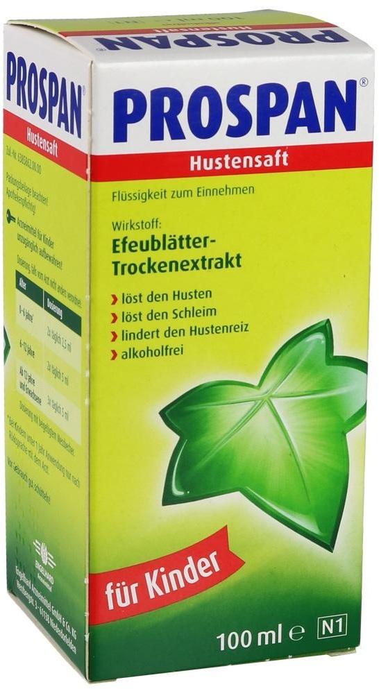 0.33 / 1 ct - Kategorie: Arzneimittel - Engelhard - GTIN:4104480700392 - PZN:04345575 - 04345575: Engelhard Arzneimittel - PROSPAN Husten Brausetabletten 20 St - 6,53 Euro bei ayvita.de - gefunden von billiger.de Dieser 100 ml Hustensaft ist das günstigste Angebot in dieser Größe und ideal für den Einstieg oder gelegentlichen Gebrauch. ![]() ![]() Engelhard PROSPAN Hustensaft 100 ml