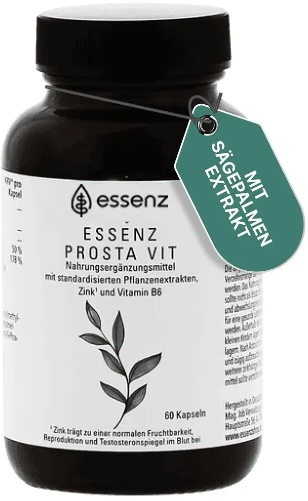 Zustand: Neu - 1.266,50 € / kg - Pflanzliche Ergänzungsmittel - ESSENZ Naturafit GmbH - - EAN: 9088888015324 - PROSTA VIT - Diese Essenz Prosta Vit Kapseln wurden speziell entwickelt, um die männliche Gesundheit auf natürliche Weise zu unterstützen. Die Kombination aus sorgfältig ausgewählten natürlichen Inhaltsstoffen tragen zur Förderung des allgemeinen Wohlbefindens bei. INHALTE - Die Prostata Kapseln kombinieren wichtige natürliche Nährstoffe wie Kürbiskernextrakt, Sägepalmenextrakt, Zink, Brennnesselwurzelextrakt und Vitamin B6. Sie werden vegan, laktosefrei, glutenfrei und ohne künstliche Farbstoffe hergestellt. WIRKUNG - Prosta Vit unterstützt den Körper mit essenziellen Nährstoffen. Diese Nährstoffe können die natürliche Körperfunktion fördern, Zellen vor oxidativem Stress schützen, Müdigkeit verringern und das Immunsystem stärken. ANWENDUNG - Mit nur einer Kapsel täglich wird die Gesundheit sowie das allgemeine Wohlbefinden effektiv unterstützt. Die praktische Kapselform sorgt für eine einfache Einnahme und eine unkomplizierte Integration in den Alltag. ESSENZ - Mit dem Wissen und der Erfahrung aus drei Generationen als Apothekerfamilie stehen wir für Qualität und Vertrauen. Unsere Werte Hilfsbereitschaft, Bodenständigkeit und Offenheit prägen unsere Arbeit und fließen in die Entwicklung unserer hochwertigen Produkte ein. - Verkäufer: Essenzshop im amazon.de Marketplace ![]() ![]() ESSENZ - Prosta Vit Kapseln - Natürliche Prosta Vit Kapseln mit Kürbiskern-, Sägepalm- & Brennnesselwurzelextrakt. Zur Förderung des Wohlbefindens. Inhalt: 60 Kapseln