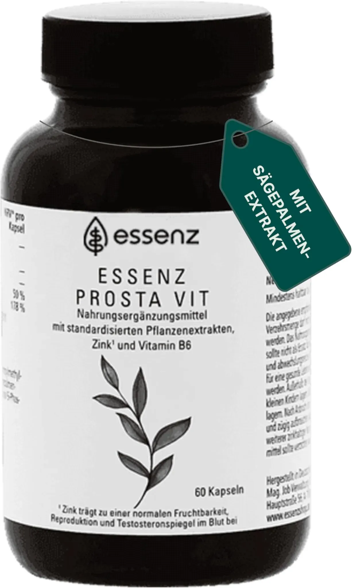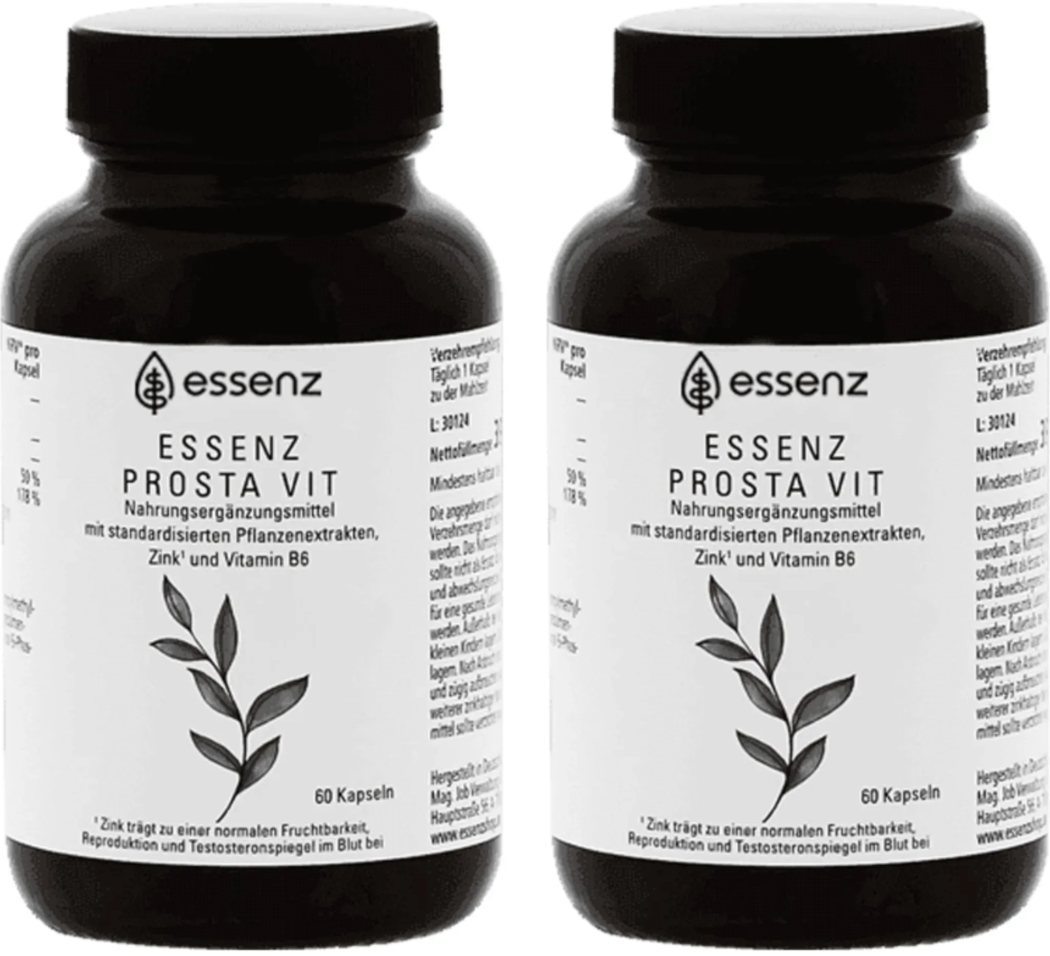 EAN: 4252010813835 - Prosta Vit dein täglicher Begleiter in Kapselform, speziell für Männer entwickelt. Die durchdachte Rezeptur kombiniert natürliche Inhaltsstoffe mit einer Auswahl an Vitaminen, Mineralstoffen und Spurenelementen ideal für eine moderne, ausgewogene Lebensweise.Vorteile von Prosta Vit:Beliebt & bewährt Prosta Vit überzeugt durch Qualität und Kundenzufriedenheit.Für Männer konzipiert Die Rezeptur wurde speziell auf die Bedürfnisse des männlichen Alltags abgestimmt.Mit natürlichen Inhaltsstoffen Jede Kapsel enthält eine sorgfältige Kombination pflanzlicher Bestandteile.Praktisch & unkompliziert Nur eine Kapsel täglich, einfach in deine tägliche Routine integrierbar.Langzeitversorgung Die 90 Kapseln reichen für eine Anwendung über drei Monate.Gut verträglich Die abgestimmte Formel eignet sich ideal zur täglichen Einnahme.Hersteller:Glory Products Oü Järvevana tee 9 11314 Tallinn, Estonia safetyofficer@glory-products.com - bei kaufland.de - aus Yadore Produktdaten ![]() ![]() ESSENZ - Prosta Vit 60 Kapseln - Natürliche Prosta Vit Kapseln mit Kürbiskern-, Sägepalm- & Brennnesselwurzelextrakt. Zur Förderung des Wohlbefindens