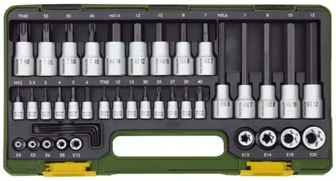 ![]() ![]() PROXXON Spezialsatz für TX- und Innensechskantschrauben, Für 1/4"-Vierkantantrieb und 1/2"-Vierkantantrieb, 42-teiliges Werkzeug-Set mit Kunststoffkoffer, 23290