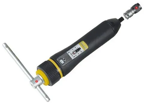 Proxxon - EAN: 4006274233485 - Automatische Auslösung beim Anziehen von Schrauben: Deutlich hör- und fühlbares Click-Signal, wenn das vorgewählte Drehmoment erreicht ist. Einstellen des Drehmomentes durch Drehen des gerändelten Ringes am Griffende (verrastbar). Gut lesbare Fensterskala. Zusätzliche Mikro-Skala zur Feinjustierung: 1 Drehung = 2,0 Nm, Skalenring mit 0,2 Nm-Teilung. Werkzeugaufnahme durch 1/4''-Vierkant (6,3 mm) für Steckschlüsseleinsätze. Dazu ein aufsteckbarer Adapter mit Federhülse zur formschlüssigen Haltung von Standardbits 6,3 mm (1/4''). Stirnseitig 1/4''-Aufnahme zum Aufsetzen eines T-Griffes mit Gleitstück (gehört zum Lieferumfang). Genauigkeit +/- 6%. Gesamtlänge 165 mm. Gewicht ca. 270 g.Adapter mit Federhülse für Standardbits 6,3mm (1/4'') gehört dazu.Stirnseitig 1/4''-Aufnahme zum Aufsetzen eines T-Griffes mit Gleitstück (gehört zum Lieferumfang). Der MC 10 ist ein Präzisionswerkzeug. Ein praktischer Kunststoffkoffer zum Aufbewahren gehört zum Lieferumfang. - bei reichelt.de - aus Yadore Produktdaten ![]() ![]() Proxxon MicroClick - MC10 Drehmomentschlüssel eBay MC 10 - für 2 - 10 NM