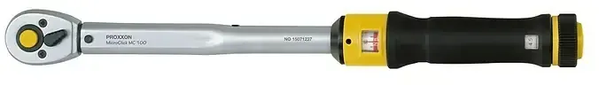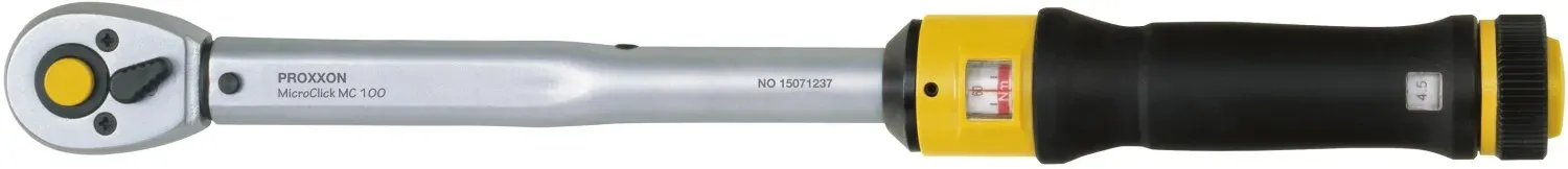 Kategorie: Schraubenschlüssel - PROXXON - GTIN:4006274233515 - Der Proxxon Drehmomentschlüssel MicroClick MC 100 ist ein Präzisionswerkzeug mit hoher Genauigkeit (Toleranz nach ISO 6789 +/- 3%). Er besitzt einen 3/8 -Vierkantantrieb (10 mm). Außerdem ist er mit einem Ratschenmechanismus ausgestattet, der eine Umschaltung von Rechts- auf Linksgang ermöglicht. Dank der automatischen Kurzauslösung ist beim Erreichen des vorgewählten Drehmomentes ein Click-Signal deutlich hör- und spürbar. Der Aufsatz sitzt fest und löst sich auf Knopfdruck von selbst durch den praktischen Entriegelungsmechanismus. Der stabile und ovale Schaft ist aus Stahl und besitzt optimalen Rostschutz, da er 2x vernickelt und anschließend mattverchromt wurde. Der Drehmomentschlüssel wurde Stück für Stück kalibriert und endgeprüft. Außerdem ist er mit einer dauerhaft gelaserten Seriennummer zur Identifikation versehen. Die deutlich lesbare Analoganzeige dient der einfachen Drehmoment-Vorwahl. Der ergonomischer Griff bewirkt, dass man das Werkzeug automatisch mittig greift, was wichtig für exaktes Auslösen ist. Das Drehmoment kann durch Drehen des gerändelten Ringes simpel vorgewählt und an der Analoganzeige deutlich abgelesen werden. Die zusätzliche Mikro-Skala dient der Feinjustierung. Die Position wird dann durch Einschubring fixiert. Geliefert wird das Werkzeug im praktischen Kunststoffkoffer. - 79,00 Euro bei BAUHAUS - gefunden von billiger.de Ein weiteres günstiges Angebot für den Proxxon MicroClick MC 100, das eine gute Option für Sparfüchse darstellt. ![]() Proxxon - MicroClick-Drehmomentschlüssel mc 100, 20 - 100 Nm, 3/8' - 23351