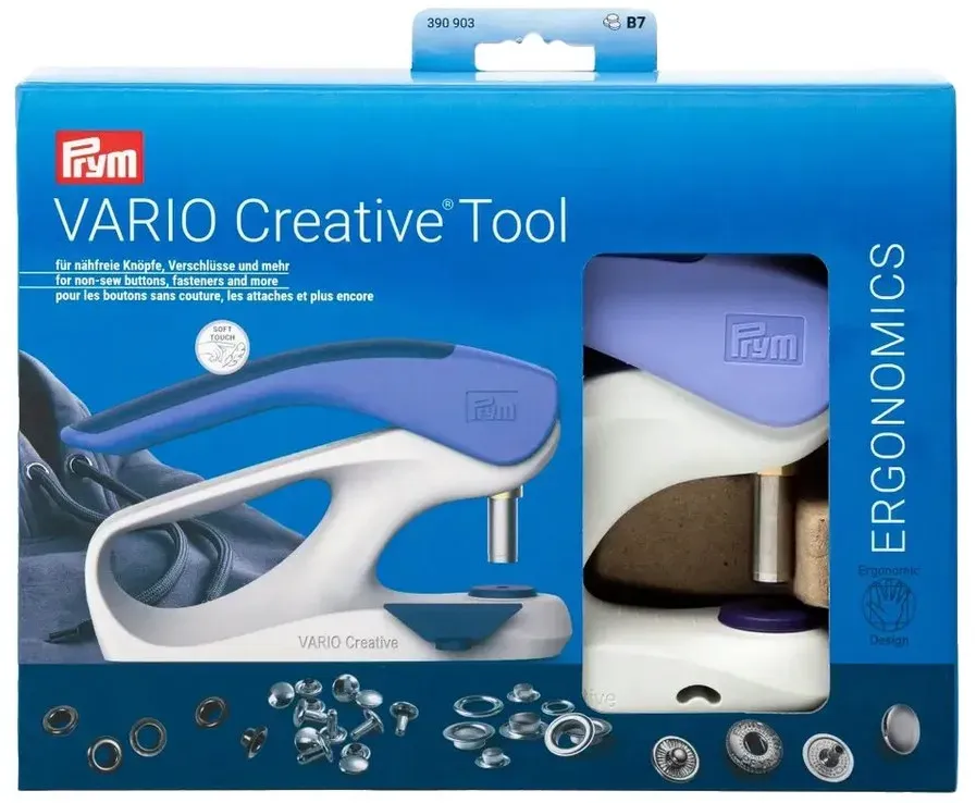 Kategorie: Nähzubehör - Prym - GTIN:4002273909062 - Kraftsparendes Lochen mit Stil Ergonomisches VARIO Creative Tool in Grau/Orange mit Soft-Touch-Griff für komfortables, präzises Arbeiten. Inklusive 4 Lochwerkzeuge 2,5 / 3,0 / 3,5 / 4,0 mm für vielseitige Anwendungen bei Druckknöpfen, ösen, Nieten & mehr. Verstellbare Kraftübertragung 3-Stufen-System zur individuellen Kraftdosierung für exaktes und müheloses Lochen. Stabil & durchdacht Mit rutschfestem Standfuß, Längs- und Quermaß sowie optionaler Tischbefestigung (Art. 390 904). Kompatibel & designstark Funktioniert mit allen Prym VARIO Werkzeug-Sets, ideal für kreative Näh- & DIY-Projekte. - 60,22 Euro bei Amazon Marketplace Home - gefunden von billiger.de Eine weitere Option für das ergonomische Prym Vario Creative Tool, das für längere Nutzung geeignet ist. ![]() ![]() Prym VARIO - Creative Tool, eBay Ergonomics