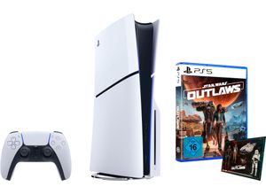 Kategorie: Konsolen - Sony - GTIN:0711719577171 - Sony Playstation 5 Slim, PlayStation 5, Schwarz, Weiß, 16384 MB, GDDR6, 448 GB/s, AMD - 499,00 Euro bei Boomstore - gefunden von billiger.de Dieses Konsolen-Set der PLAYSTATION 5 Disk Edition (Slim) mit Star Wars Outlaws bietet ein aktuelles Spiel direkt zum Start. ![]() PLAYSTATION 5 Spielekonsole 'Disk Edition (Slim) + Star Wars Outlaws', schwarz (schwarz, weiß), B:35,8cm H:9,6cm T:21,6cm, Spielekonsolen, Topseller