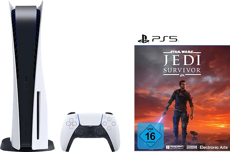 Kategorie: Konsolen - Sony - GTIN:4068222957713 - Farbe Farbe , weiß/schwarz, Bestandteile Anzahl Controller im Lieferumfang , 1, Spiele im Lieferumfang , Astro Bot, Controller im Lieferumfang , DualSense Controller, Datenträger Spiele , Blu-Ray, Downloadplattform Spiele , PS Store, Lieferumfang , 2 horizontale Standfüße Druckerzeugnisse HDMI Kabel Netzteil USB Kabel Wireless-Controller, Audio- und Videowiedergabe Laufwerk , Blu-ray, Unterstützte Formate , Blu-ray PlayStation 5 Datenträger (Ultra HD Blu-ray) PlayStation 5 Spiele Playstation 4 Spiele, Unterstützte Video-Auflösungen , 4K Full HD, Unterstützte Medien , Filme Musik Spiele, Anschlüsse Typ HDMI-Anschluss , HDMI 2.1, Anzahl HDMI-Anschlüsse , 1, Typ USB-Anschluss , USB-A USB-C, Anzahl USB-Anschlüsse , 3, Anzahl USB-3.0-Anschlüsse , 1, Anzahl USB-C-Anschlüsse , 2, Typ LAN-Anschluss , RJ45-Ethernet, Netzwerk- und Verbindungsarten Netzwerkstandard , LAN WLAN, Wi-Fi-Standard , a ac ax b g n, übertragungsrate LAN , 1000, Speicher Speicherkapazität Arbeitsspeicher (RAM) , 16, Speicherkapazität Festplatte in GB , 1000 GB, Prozessor Hersteller Prozessor , AMD, Serie Prozessor , Zen 2, Bauart Prozessor , Okta-Core, Grafikkarte Hersteller Grafikkarte , AMD, Grafikkarte , RDNA 2, Altersfreigabe (USK) USK-Freigabe , ab n, Stromversorgung Art Stromversorgung , externes Netzteil, Ladefunktion Power Delivery (PD) , mit USB PD, Ladeleistung maximal , 14 W, Ladeleistung minimal , 2 W, Maße & Gewicht Breite , 35,8 cm, Höhe , 9,6 ... Das Bundle mit Star Wars Jedi: Survivor ist perfekt für Fans der Star Wars-Saga, die eine PS5 mit einem Top-Spiel erwerben möchten. ![]() ![]() SONY PS5 + STAR WARS JEDI: SURVIVOR