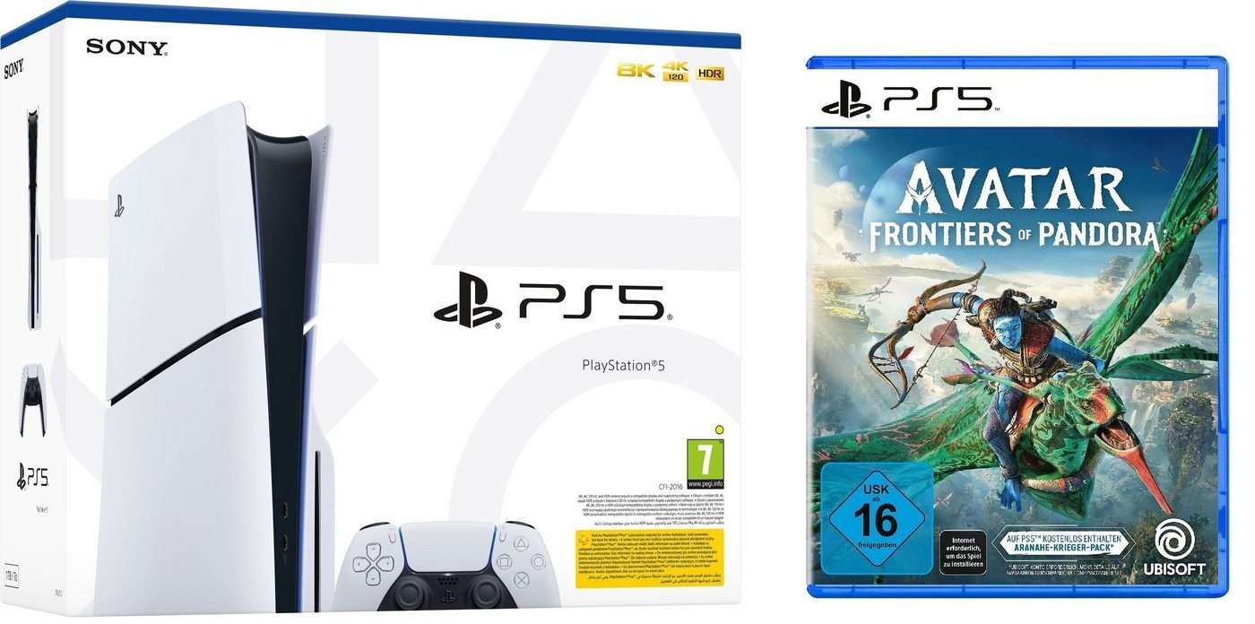 ![]() ![]() Sony Playstation PS5 Konsole Slim mit Avatar: Frontiers of Pandora Spiel 1TB (Bundle), Playstation 5 Console Laufwerk Disk weiß