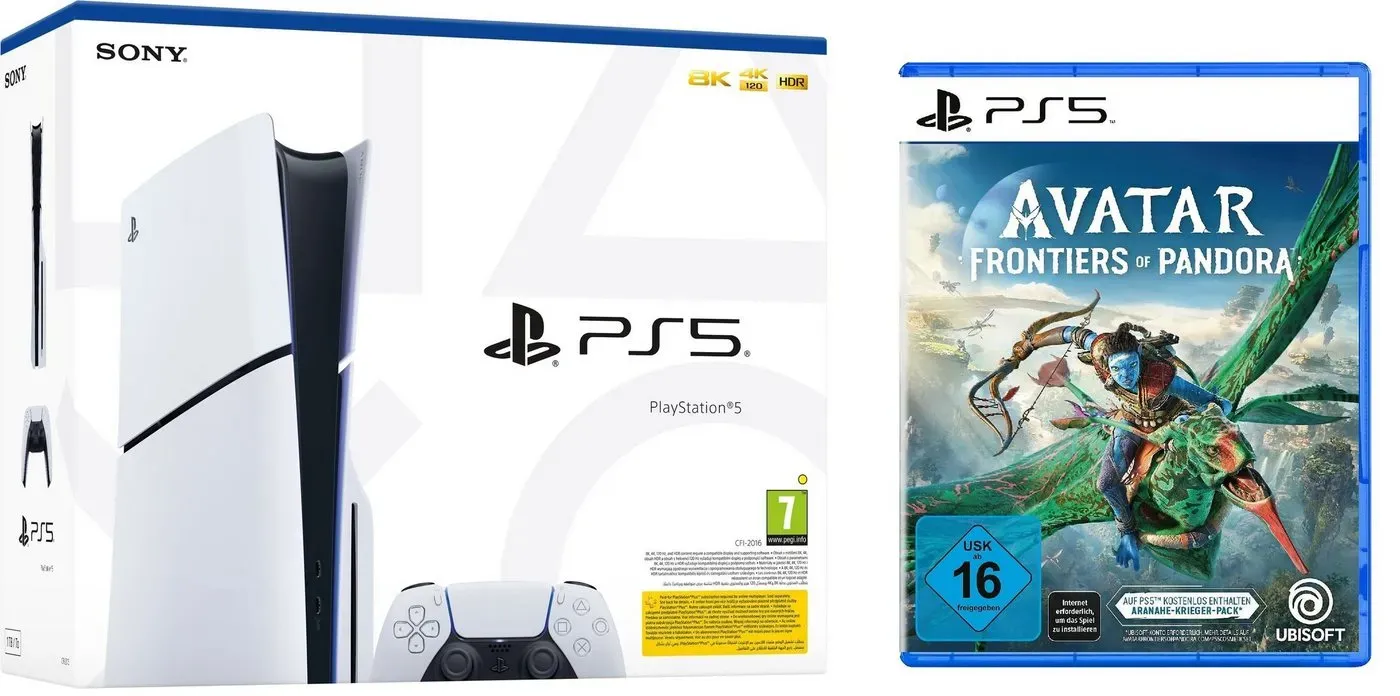 lieferbar-in 4-5 Werktagen bei dirSony Playstation PS5 Konsole Slim mit Avatar: Frontiers of Pandora Spiel 1TB (Bundle), Playstation 5 Console Laufwerk Disk weiß
