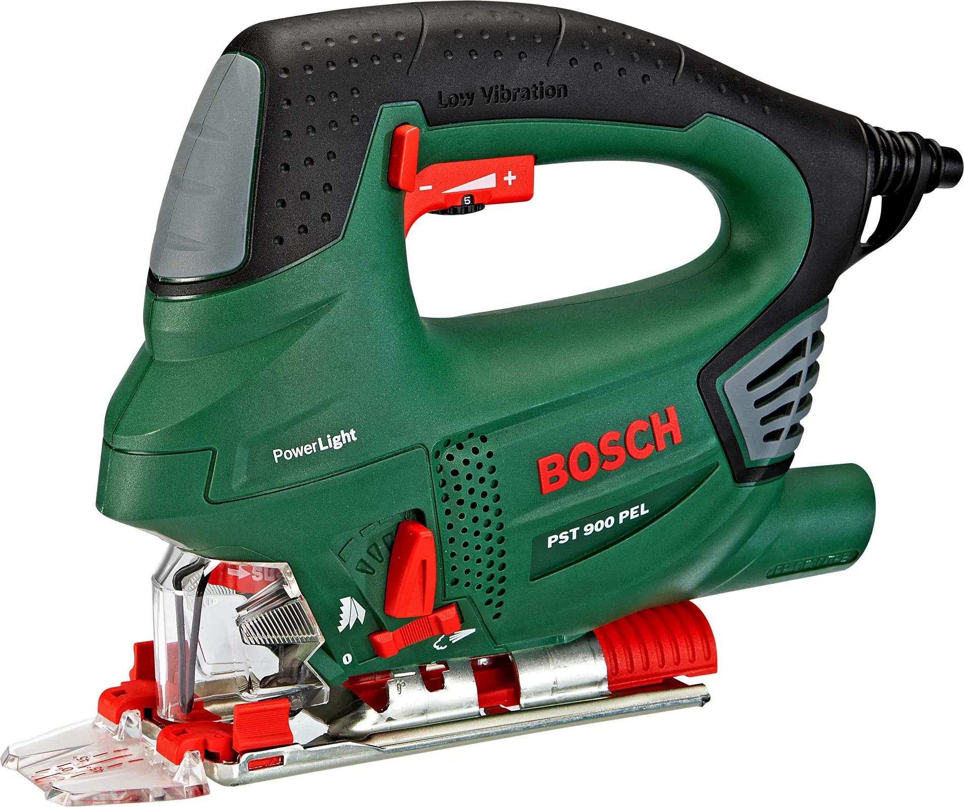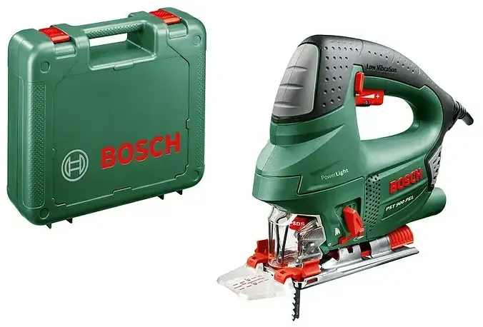 Kategorie: Stichsägen - Bosch - GTIN:3165140526968 - Die Bosch Stichsäge PST 900 PEL bietet Ihnen höchste Präzision bei jeder Anforderung. Die Stichsäge bietet bei sämtlichen Arbeiten im Haus die passende Einstellung um Ihnen die gewünschten Ergebnisse zu liefern. Vielseitige Anwendungsmöglichkeiten Die kompakte und zugleich robuste Stichsäge PST 900 PEL von Bosch ist mit einem starken 620 W-Motor ausgestattet, welcher mühelos eine Schnitttiefe von bis zu 90 mm erreicht. Die verstellbare Fußplatte, für Gehrungsschnitte bis zu 45 sowie die hervorragende Handlichkeit mit Softgrip und minimaler Vibration sorgen für kontrollierten und optimalen Benutzerkomfort. Innovative Extras Das innovative CutControl ermöglicht eine gute Orientierung und einen präzisen Schnitt entlang der gewünschten Linie. Zusätzlich unterstützt wird die Funktion noch von einer lichtstarken LED-Leuchte, die eine stets klare Sicht auf die Schnittlinie gewährleistet. Einen einfachen Sägestart und materialgerechtes Arbeiten bewirkt die Hubzahlsteuerung mittels Schalterdrücker und Stellrad. Die orbitale 4-Stufen-Pendelung ermöglicht einen schnelleren Sägefortschritt, bessere Kurvengängigkeit sowie eine längere Lebensdauer des Sägeblattes. Mittels Bosch SDS können Sie das Sägeblatt mühelos ohne Werkzeug wechseln. Damit der anfallende Staub nicht die Sicht auf die Schnittlinie verdeckt, ist eine zuschaltbare Blasfunktion vorhanden. Außerdem besteht die Möglichkeit, eine extra Staubabsaugung zu befestigen. - ... Mit 84.99 Euro ist dieses Angebot von billiger.de eine der günstigsten Optionen inklusive Koffer, was es besonders attraktiv macht. ![]() ![]() Bosch PST 900 PEL inkl. Koffer