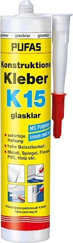 Kategorie: Reinigungsmittel - Pufas - GTIN:4007954350010 - MS-Polymer lösungsmittelfrei sofortige Haftung und hohe Belastbarkeit innen und außen witterungs- und UV-beständig - 12,00 Euro bei Amazon Marketplace Home Improvement - gefunden von billiger.de ![]() ![]() Pufas Konstruktions-Kleber K15 klebt Metall, Spiegel, Fliesen PVC, Holz etc. 0,300 KG