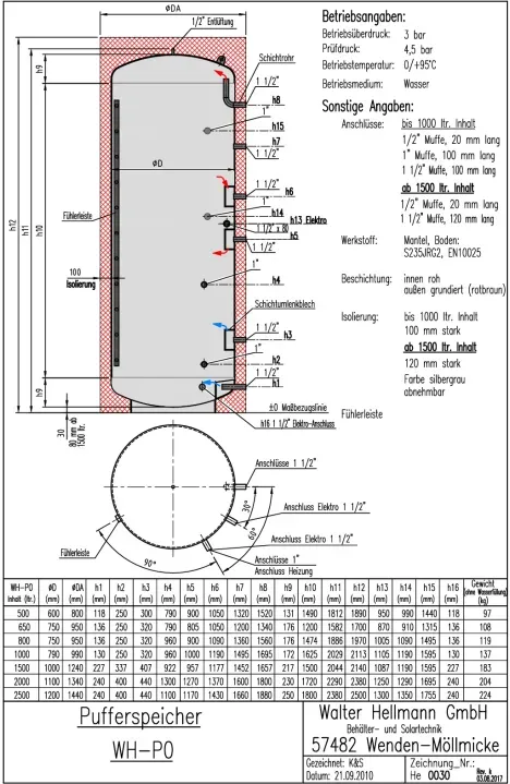 Kategorie: Pufferspeicher - HAJDU - Hygienespeicher mit Trinkwasser Edelstahlwellrohr-Wärmetauscher und 2 Heizungswärmetauscher, 1000L, EEK B - 1637,70 Euro bei emax-haustechnik.de - gefunden von billiger.de Der Walter Hellmann Pufferspeicher WH-P0 1000 L Standard ist eine zuverlässige Standardlösung für viele Heizsysteme. ![]() ![]() Walter Hellmann GmbH Walter Hellmann Pufferspeicher WH-P0 1000 L Standard