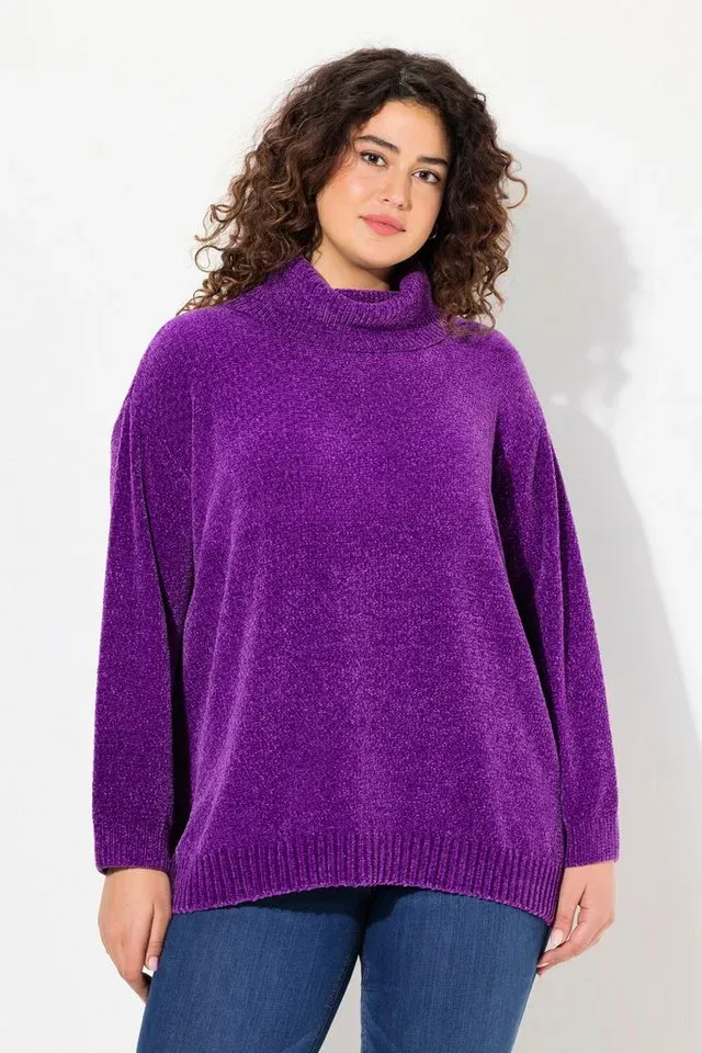 ![]() ![]() Ulla Popken Longpullover Chenille-Pullover Oversized Stehkragen Langarm lila 50/52