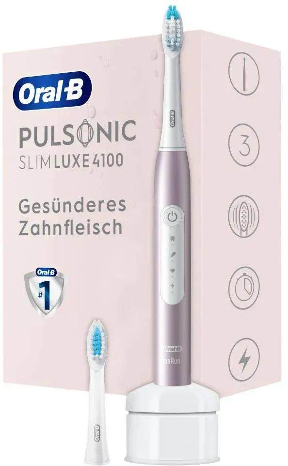 Kategorie: Elektrische Zahnbürsten - Oral-B - GTIN:4210201396208 - Entfernt mit sanfter Schalltechnologie und 39.000 Bürstenkopfbewegungen pro Minute mehr Plaque als eine herkömmliche Handzahnbürste Extra Zahnfleischschutz dank vibrierenden, abgerundeten Borsten 2 Putzprogramme: Tägliche Reinigung, Aufhellen Der Akku hält mit einer Vollladung bis zu 2 Wochen Lieferumfang: 1 elektrische Schallzahnbürste mit Ladestation, 1 Aufsteckbürste - 37,00 Euro bei Amazon Marketplace Health & Personal Care - gefunden von billiger.de Die Pulsonic Slim Luxe 4100 in Roségold für 63.90 Euro ist ein attraktives Angebot für alle, die Wert auf Design und erweiterte Funktionen legen. ![]() ![]() Oral-B Pulsonic Slim Luxe 4100 rosegold