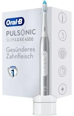 Verfügbarkeit: lieferbar-in 2-3 Werktagen bei dir - Kategorie: Elektrische Zahnbürsten - Oral-B - GTIN:4210201305569 - Technische Daten WEEE-Reg.-Nr. DE , 32322754, Hinweise Lieferumfang , 1x Handstück, 1x Aufsteckbürste Pulsonic Clean, 1x Aufsteckbürste Pulsonic Sensitive, 1x Ladestation, - 68,00 Euro bei OTTO - gefunden von billiger.de Dieses Modell bietet ein gutes Gesamtpaket mit Reiseetui und 3 Putzmodi für eine vielseitige Zahnpflege. ![]() ![]() Oral-B Pulsonic Slim Luxe 4500 Elektrische Schallzahnbürste/Electric Toothbrush, 2 Aufsteckbürsten, 3 Putzmodi für Zahnpflege + gesundes Zahnfleisch, Reiseetui, Designed by Braun, Platinum