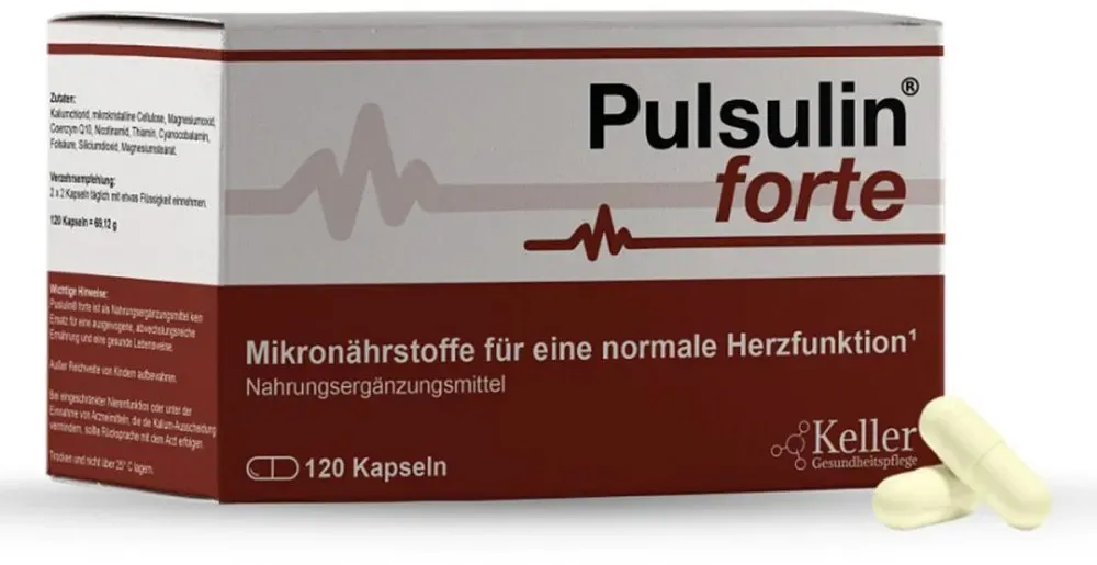 0,32 /Stück - Kategorie: Arzneimittel - Keller Gesundheitspflege GmbH - GTIN:4270003220118 - PZN:18759553 - Pulsulin Forte Kapseln 120 Stück - von Keller Gesundheitspflege GmbH - Kategorie: Pulsulin - versandkostenfrei - 37,90 Euro bei healthii - gefunden von billiger.de ![]() ![]() Keller Gesundheitspflege GmbH Pulsulin Forte Kapseln