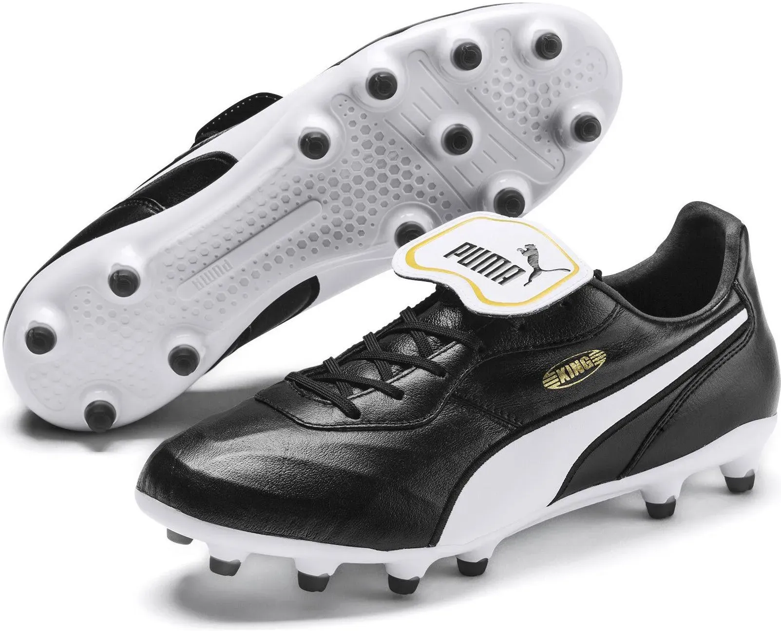 Zustand: Neu - Fußballschuhe Herren-Fußballschuhe - PUMA - 108472 - EAN: 4069156660694 - KING TOP FG/AG - bei Amazon.de ![]() ![]() King Top FG/AG Herren Puma Black-Puma White-Puma Gold 46