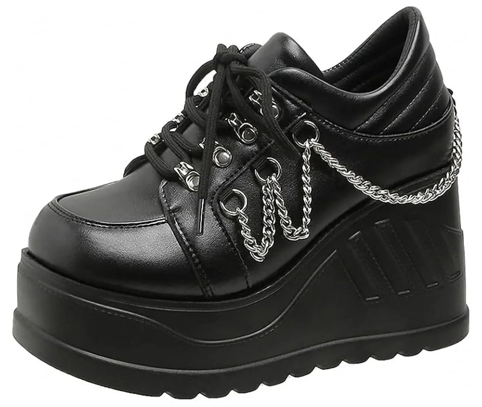 Dieses Angebot ist ein Beispiel für Angebote, die kürzlich auf dem eBay-Marktplatz in der Kategorie 260010 verfügbar waren. Bitte aktualisieren Sie die Suchergebnisse um aktuelle Angebote zu erhalten. Diese Mary Janes bieten einen verspielten Lolita-Punk-Stil zu einem sehr günstigen Preis. ![]() ![]() bkywjtr6 Punk Fashion Black Chain Heart Buckle Female Lolita Cute Mary Janes Pumps Platform Wedges High Heels Women's Sweet Gothic Punk Shoes - 37 EU
