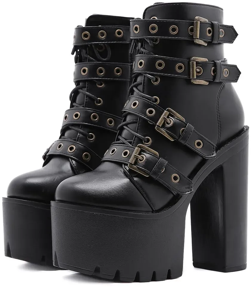 Kategorie: Pumps & High Heels - feinlina - Heel Heel Height:5.11inch/13cm Design Mit einem Kreuzriemen-Design werden diese High Heels sicher die Blicke der Passanten auf sich ziehen. Das schwarze Punk-Design verleiht Ihrem Outfit einen kantigen Touch und lässt Sie aus der Masse herausstechen. Komfortabel Der Stilettoabsatz sorgt für Höhe, verlängert Ihre Beine und verleiht Ihnen einen sexy, selbstbewussten Look. Das Plateau-Design verleiht den Schuhen noch mehr Höhe und Komfort und macht sie perfekt für langes Stehen und Gehen. Fit Diese Schuhe sind perfekt für jede Gelegenheit, ob Sie zu einem Tanz, einer Party gehen oder einfach Ihre modische Seite zeigen wollen. Service :Wenn Sie ein Problem mit dem Artikel oder der Größe haben, können Sie uns jederzeit kontaktieren. - 45,00 Euro bei Amazon Marketplace Shoes - gefunden von billiger.de Diese Goth Knöchel-Stiefel mit Nieten und Schnürung bieten ein detailliertes und authentisches Punk-Design. ![]() ![]()
