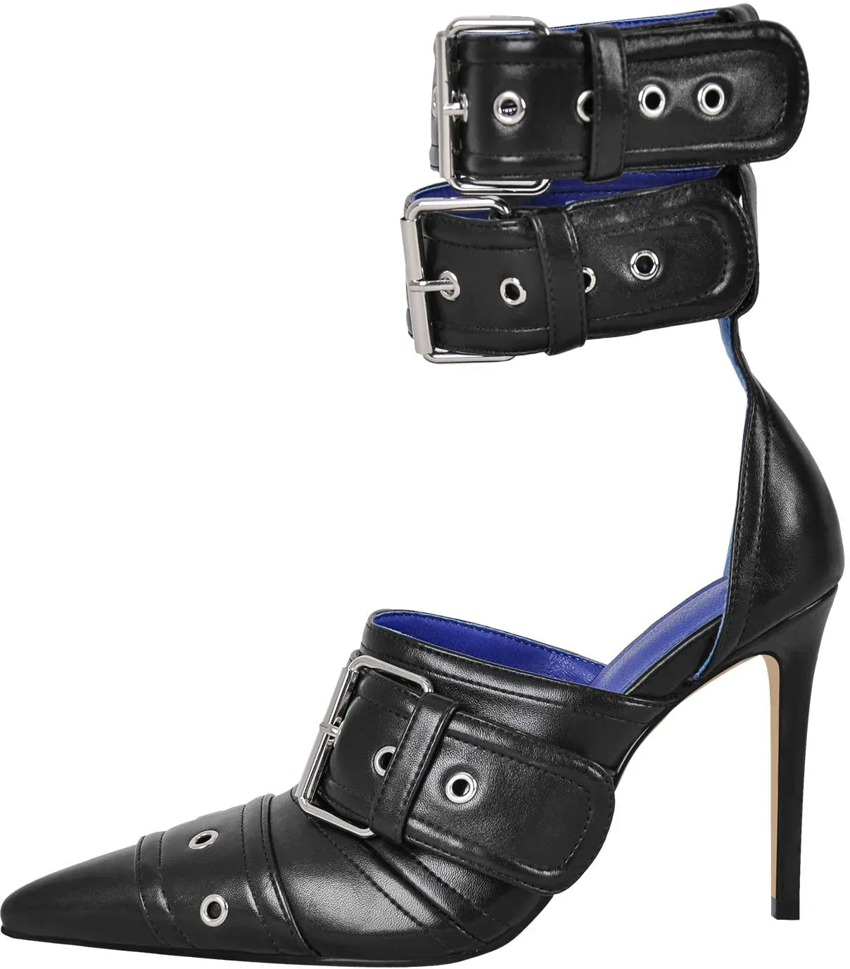 Gewöhnlich versandfertig in 6 bis 7 Tagenblingqueen Damen Spitze Pumps Stiletto Schnalle Punk High Heels Schwarz 46 EU - 46 EU