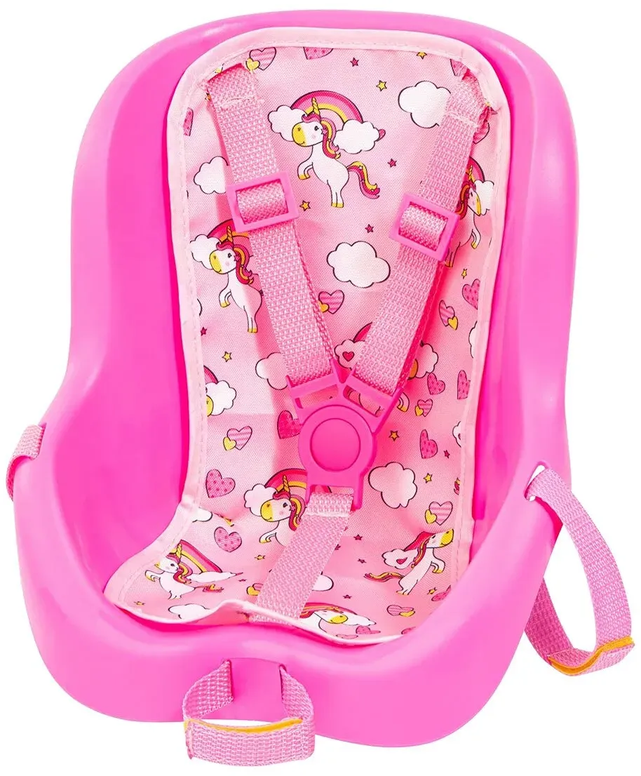 Puppen Puppen, Spielsets & Spielzeugfiguren Spielzeug Kinderspielzeug ab 12m Puppen Puppenzubehör Spielzeuge - EAN:4003336673005 - Mit dem Puppen-Fahrradsitz von Bayer Design haben Kinder ihre Lieblingspuppe auch auf Ausflügen immer dabei. So lernen die Kleinen schon früh, Verantwortung für andere zu übernehmen. Puppen-Fahrradsitz von Bayer Design gemustertes Polster mit verstellbarem Gurt vorn oder am Gepäckträger mittels Gurten montierbar für Puppen von 33 bis 46 cm Sitz aus Kunststoff, Polster aus Textil ab n geeignet Der Puppen-Fahrradsitz von Bayer Design ermöglicht es Kindern, ihre Puppe auch beim Ausflug mitzunehmen. Der Sitz kann mittels Gurten an Lenker oder Gepäckträger montiert werden. Puppen mit bis zu 46 Zentimetern Größe finden in der Sitzschale mit gemustertem Polster Platz. Ein Sichereitsgurt schützt die Spielpuppe vor dem Herausfallen. Abmontiert kann der Sitz auch als Babyschale genutzt werden. Mit dem Modell können Kinder realitätsnahe Familienszenen nachspielen und lernen dabei, Verantwortung für andere zu tragen. - gefunden von Kelkoo ![]() ![]() Bayer Design 67300AA - Puppen-Fahrradsitz Bike Seat, Motiv Einhorn, pink
