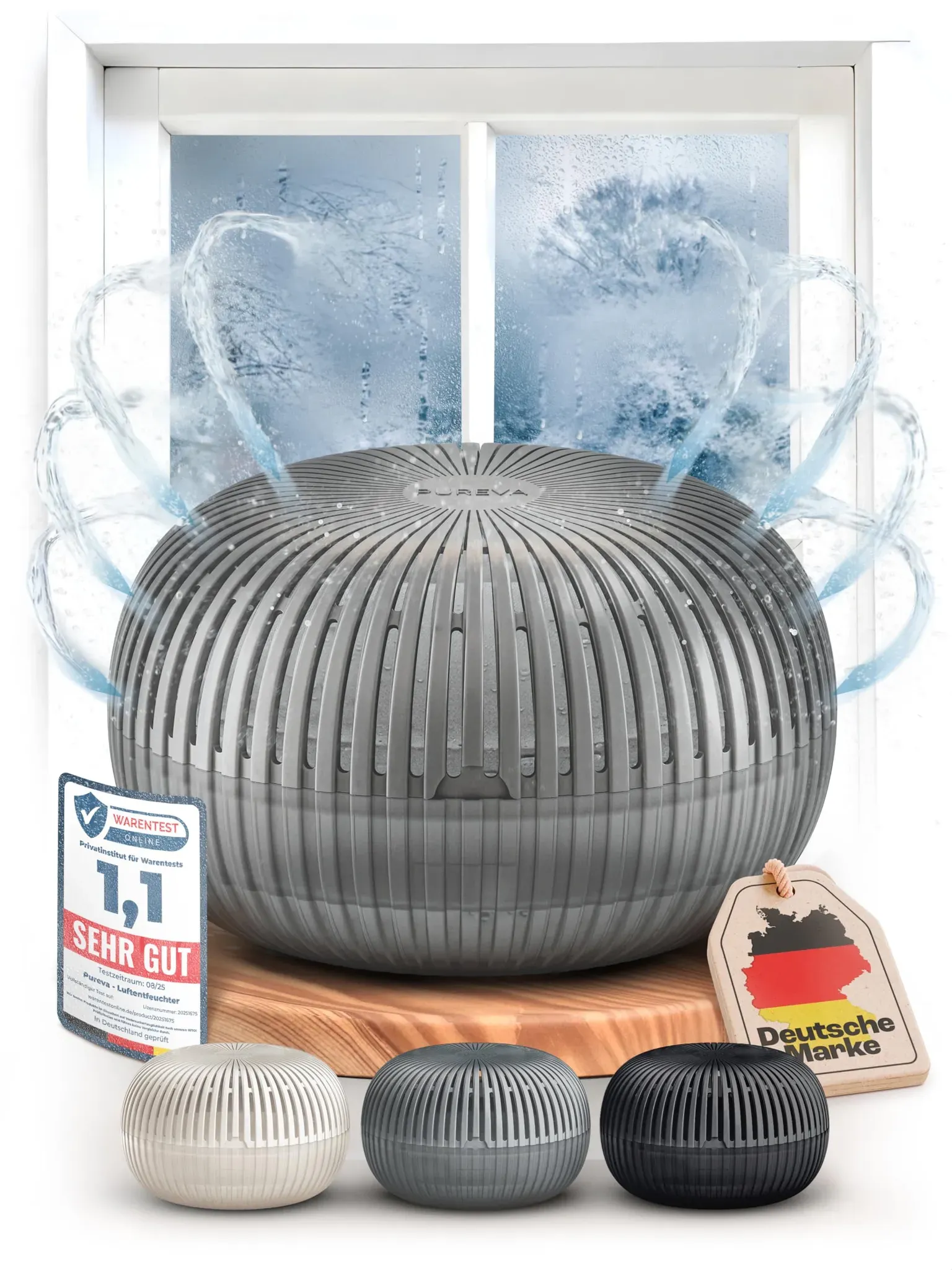 Auf Lager Versand durch AmazonPUREVA Flow Luftentfeuchter ohne Strom bis 25m² [NEUESTE FORMEL] Raumentfeuchter ohne Strom mit 450g Entfeuchter Granulat - Raumluftentfeuchter - Feuchtigkeitsabsorber für ein angenehmes Wohnklima