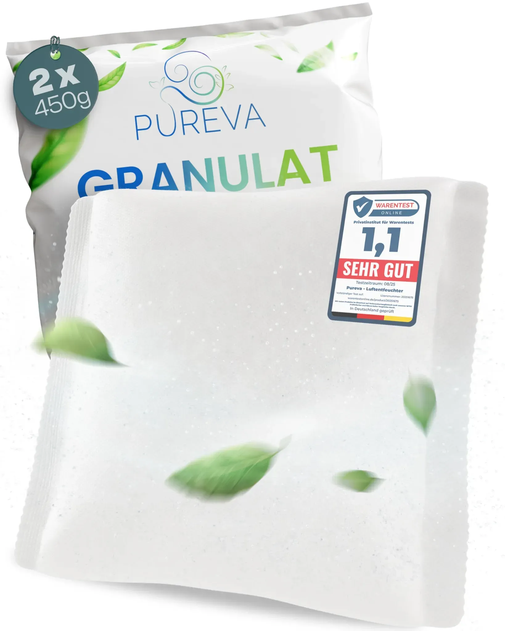 Auf Lager Versand durch AmazonPUREVA Luftentfeuchter Nachfüllpack 2x 450g [NEUESTE FORMEL] Entfeuchter Nachfüllpack mit hochwirksamem Luftentfeuchter Granulat - Entfeuchter Granulat neutralisiert Gerüche & beugt Schimmel vor