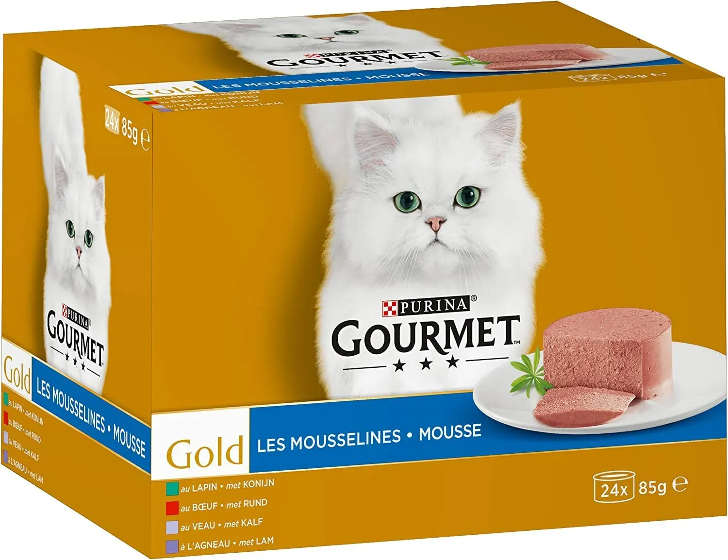 Verfügbarkeit: 2-4 Werktage - 7.48 € / 1 kg - Kategorie: Katzenfutter - Purina - GTIN:8445290502186 - Billig Gourmet Gold Zarte Leckerbissen mit Huhn Katzen-Nassfutter (85 g) 1 Palette (24 x 85 g) - 15,25 Euro bei Brekz.de - gefunden von billiger.de Ein 24er-Pack "Musselin" zu einem mittleren Preis, ideal für Katzen, die diese Konsistenz bevorzugen. ![]() ![]() Purina Gourmet Gold Musselin, 24 x 85 g, 322270889759