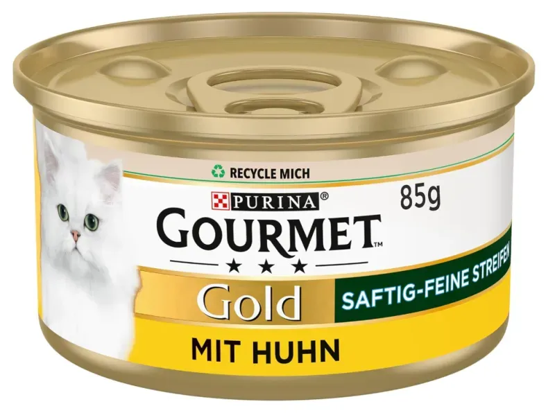 Verfügbarkeit: lieferbar-in 7-9 Werktagen bei dir - 9.29€/1kg - Kategorie: Katzenfutter - Purina - GTIN:8445290502452 - Produktdetails Tierart , Katze, Zusammensetzung Zusammensetzung , Zusammensetzung Fleisch und tierische Nebenerzeugnisse, Pflanzliche Eiweißextrakte, Fisch und Fischnebenerzeugnisse (4% Lachs), Mineralstoffe, Pflanzliche Nebenerzeugnisse, Zucker. Analytische Bestandteile Feuchtigkeit: 80,0 %, Protein: 13,5 %, Fettgehalt: 2,8 %, Rohasche: 2,2 %, Rohfaser: 0,05 %., - 0,79 Euro bei OTTO - gefunden von billiger.de Ein kleines Multipack mit 4 Dosen, gut geeignet für den Einstieg oder als Geschenk. ![]() ![]() Purina Gourmet Gold Feuchtfutter für Katzen, Fleisch mit Huhn und Rind, 4 x 85 g