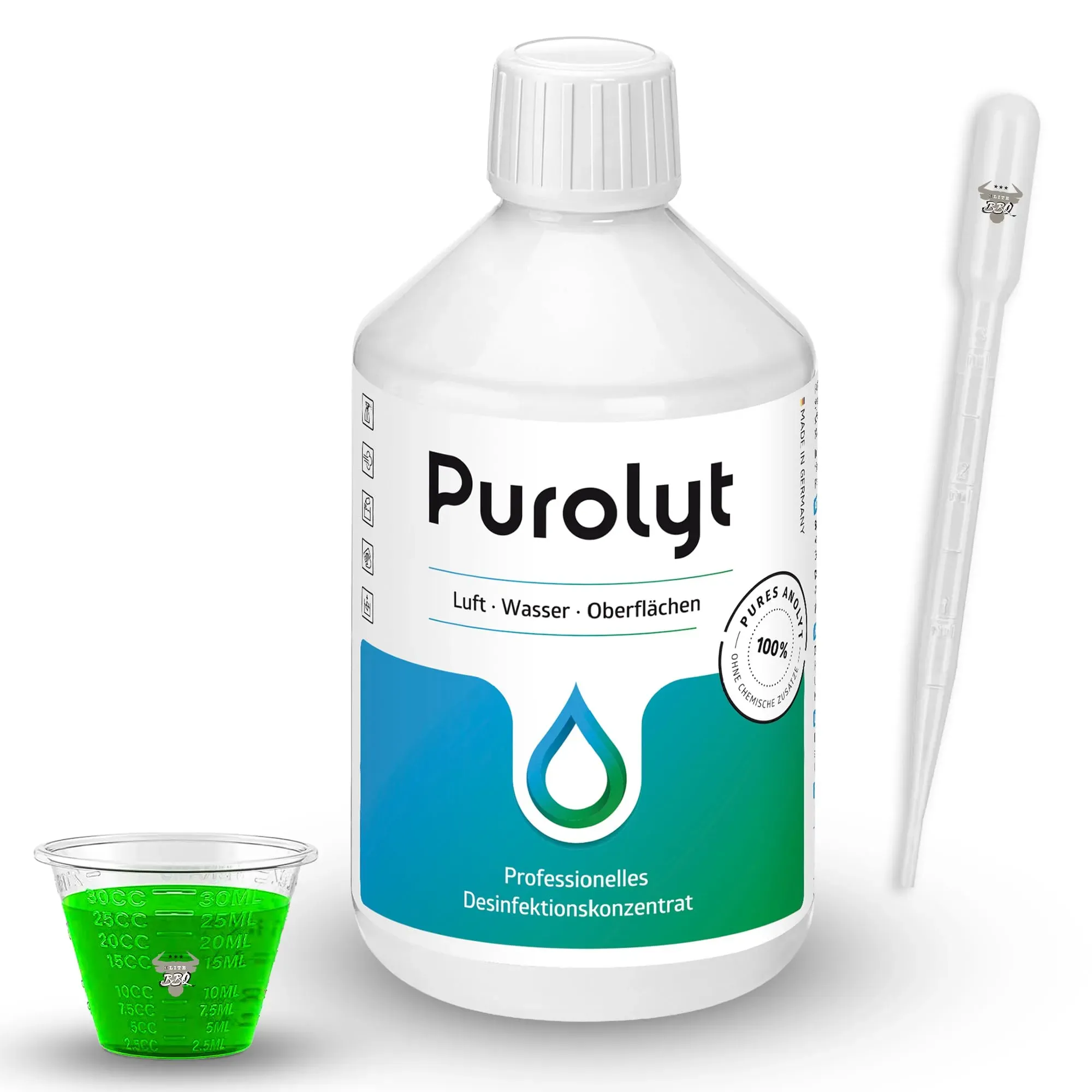 Dieses Angebot ist ein Beispiel für Angebote, die kürzlich auf dem eBay-Marktplatz in der Kategorie 159912 verfügbar waren. Bitte aktualisieren Sie die Suchergebnisse um aktuelle Angebote zu erhalten. ![]() ![]() Purolyt Desinfektionskonzentrat 500ml mit Pipette und Messbecher ? Chemiefreie Desinfektion für Luft, Wasser und Oberflächen