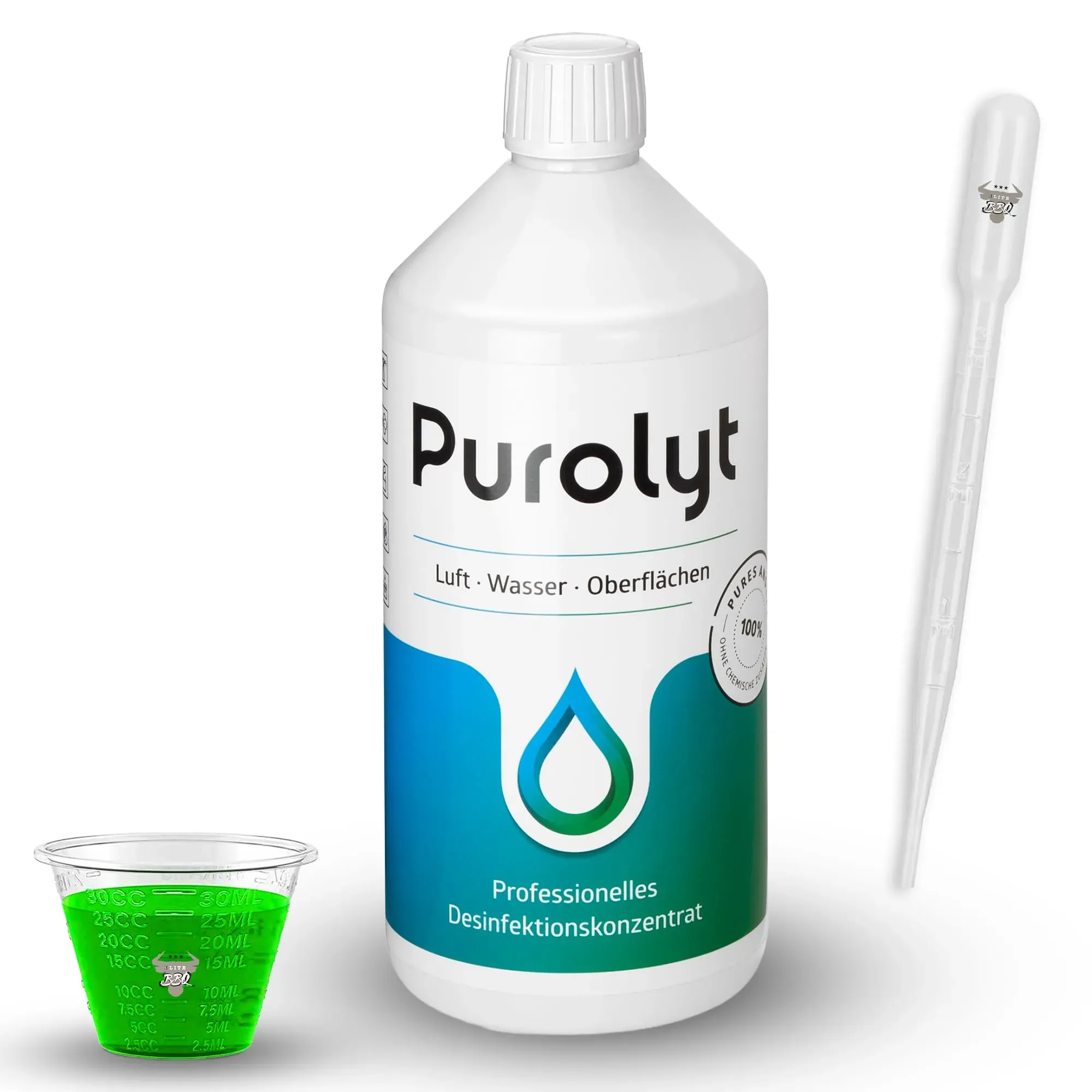 Dieses Angebot ist ein Beispiel für Angebote, die kürzlich auf dem eBay-Marktplatz in der Kategorie 183902 verfügbar waren. Bitte aktualisieren Sie die Suchergebnisse um aktuelle Angebote zu erhalten. ![]() ![]() Purolyt Desinfektionskonzentrat 1L mit Pipette und Messbecher ? Effektive, chemiefreie Desinfektion für Luft, Wasser und Oberflächen