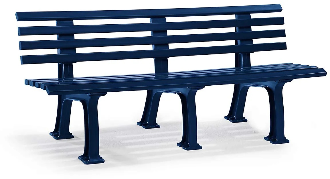 Gewöhnlich versandfertig in 2 bis 3 TagenBlome Parkbank aus Kunststoff - mit 9 Leisten - Breite 2000 mm, stahlblau - Gartenbank Ruhebank Bank für Außenbereich UV- und witterungsbeständig PVC Bank