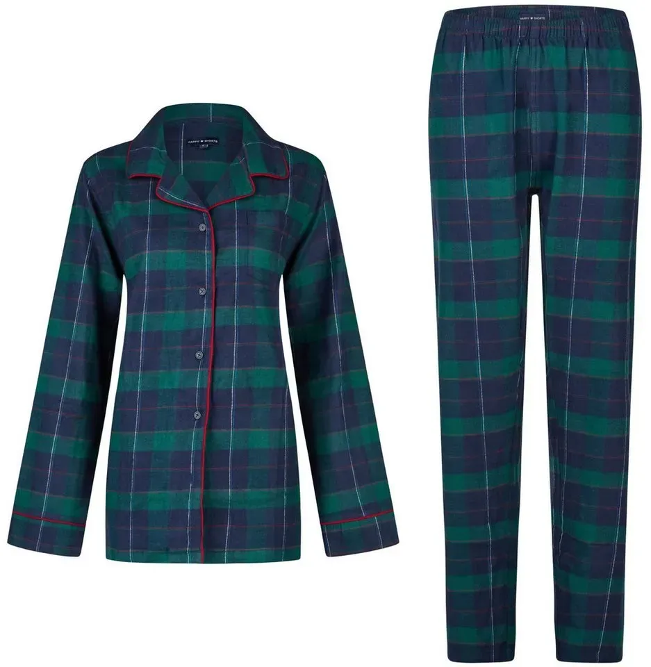 lieferbar-in 4-5 Werktagen bei dirHAPPY SHORTS Pyjama Happy Shorts Damen Flanell Pyjama Schlafanzug Homewear XMAS Grau Grün grün S