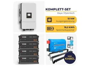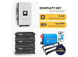 - - Das Kombigerät MultiPlus II Bei diesem Gerät handelt es sich um eine Kombination aus Wechselrichter, Ladegerät und Transferschalter. Diese neue Version des MultiPlus II kommt ohne schwere Kupferspule. Dadurch ist das Gerät nicht nur deutlich leichter, sondern es ist wesentlich leiser im Betrieb als die herkömmlichen Modelle. Selbst unter Volllast entspricht die Geräuschentwicklung nur der eines PC-Lüfters. Zahlreiche Schnittstellen stehen Dir zur Verfügung: Unter anderem zwei VE.Bus-Anschlüsse sowie Ein- und Ausgänge, die von Dir programmiert werden können. Zum Beispiel für eine Anbindung an Dein Smart-Home und für das gezielte Betreiben von Geräten wie z. B. einer Wärmepumpe bei überschuss. Wenn das kompliziert klingen sollte, dann sei beruhigt: Diesem HUSATECH PowerSet liegt alles bei, was Du für den Anschluss und Betrieb benötigst. Und wir selbst konfigurieren diese Geräte für Dich vor der Auslieferung und stellen sie genau auf das von Dir gewählte Speicher-Set ein. Diese Konfiguration beinhaltet: Einstellung des Grid-Codes auf Deutschland Aktivierung des Batteriemonitors Einstellung der Abschaltspannungen sowie der Ladespannungen der Batterie Konfiguration des ESS-Assistenten Möchtest Du später weitere Einstellungen am Wechselrichter vornehmen, so benötigst Du zusätzlich das Programmier-Interface Victron MK3-USB. Zudem bieten wir Dir hier zwei Auswahlmöglichkeiten: Du kannst wählen zwischen einem PowerSet mit einem MultiPlus GX oder einem PowerSet ohne MultiPlus ... Ein empfehlenswertes 3-phasiges System mit Deye Hybrid-Wechselrichter und 19,2 kWh Speicherkapazität für einen höheren Energiebedarf. ![]() 367016 / husatech.d e_Intext_B NPL Deye Hybrid-Wechselrichter SUN-12K-SG05LP3 mit 4 x Pylontech US5000 1-C | 3-phasig | 12 kW | 19,2 kWh