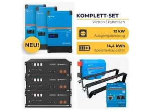 - - Niedervolt-Speicher mit 12 kW Leistung und 14,4 kWh Speicherkapazität Dieses dreiphasige Niedervolt-Speichersystem besteht aus dem Deye Hybrid-Wechselrichter SUN-12K-SG05LP3-EU-SM2 mit 12 kW Ausgangsleistung und drei Pylontech 5000 1-C Akkus, die es auf 14,4 kWh Gesamtspeicherkapazität bringen. Zusammen sind sie ein hochwertiges Batteriespeichersystem für Deine PV-Anlage. Ein regelrechtes Dream-Team also. Die maximale PV-Eingangsleistung beträgt 24 kW. Die drei Speichereinheiten des Pylontech Batteriespeichers kommen mit jeweils 4,8 kWh Speicherkapazität, von denen jeweils 4,56 kWh nutzbar sind. Der Hersteller verspricht über 6000 Ladezyklen. Wechselrichter und Batteriespeicher kommen mit bis zu 1 n Hersteller- . Somit bist Du mit diesem Speichersystem für Deine PV-Anlage für eine sehr lange Zeit auf der sicheren Seite. Im Lieferumfang stecken nicht nur der Wechselrichter mit WiFi-Dongle und drei Pylontech Speichereinheiten, sondern auch die Anschlusskabel für die Batterien sowie für die Verbindung der Batterien zum Inverter. Zudem gibt es drei Paar Pylontech Brackets dazu, mit denen Du die Akkus untereinander fest verbindest. Damit kannst Du sie sicher aufstellen und sie haben genug Zwischenraum, damit die Luft perfekt zwischen den einzelnen Speichereinheiten zirkulieren kann. Und natürlich sind auch die Komponenten für den absolut sicheren Betrieb mit dabei. Enthalten ist der Victron Lynx Distributor inklusive Sicherungen. So kann jede Leitung mit einer Sicherung ... Dieses PowerSet bietet ein 3-phasiges System mit Victron MultiPlus-II und 14,4 kWh Speicherkapazität, ideal für mittlere Haushalte. ![]() 367016 / husatech.d e_Intext_B NPL HUSATECH PowerSet: 3-phasig mit 2x MultiPlus-II 48/4k5/55-32 + 1x MultiPlus-II 48/4k5/55-32 GX + 3x US5000 | 12 kW 14,4 kWh