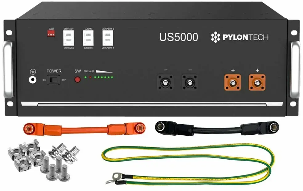 Kategorie: Solaranlagen - PYLONTECH - GTIN:4262397633209 - In diesem Bundle erhältst Du zusätzlich zum Pylontech US5000 1-C LiFePO4-Akku die passenden Brackets, die für eine bessere Luftzirkulation und ein sicheres vertikales Stapeln der Batterien nützlich sind. Außerdem sind für die Verbindung aller Komponenten ein Wechselrichter-Anschlussset enthalten. Unterhalb der Beschreibung findest Du eine Liste mit kompatiblen Wechselrichtern, welche vom Hersteller in Verbindung mit dem Batteriespeicher getestet wurden. Eine Kompatibilitätsliste für Pylontech mit über 30 Marken und Unternehmen, darunter beispielsweise Victron Energy, Votronic, Growatt u. v. m., findest Du als Download in unseren Anhängen am Fuße dieser Beschreibung (Pylontech Compatibility List). Das Pylontech US5000 1-C Bundle enthält: 2x Pylontech US5000 1-C LiFePO4 2x Pylontech Halterung / Brackets für US5000 2x Pylontech Batterieanschlusskabelset Pylontech zu Wechselrichter Pylontech US5000 1-C LiFePO4 Bei der Pylontech US5000 1-C handelt es sich um einen Lithiumspeicher der neuesten Generation. Der Speicher wurde speziell entwickelt, um den hohen Ansprüchen gerecht zu werden, die heutzutage an einen Solarspeicher gestellt werden. Sogar bei regelmäßig tiefer Entladung rt der Pylontech US5000 dank neuester Technologie höchste Sicherheit und eine lange Lebensdauer. Zusätzlich bietet die neueste Batterie des marktführenden Herstellers, mit nun 4,8 kWh pro Modul, wieder einmal viel Sicherheit. Das in jedem Modul ... Ein gutes Paketangebot für zwei Pylontech US5000 Batterien inklusive Brackets und Anschlusskabel, ideal für eine größere Speicherkapazität. ![]() ![]() 2x Pylontech US5000 LiFePO4 48V + Brackets + Anschlusskabel 9,6kWh - 0% MwST. (Angebot gemäß 12 USt Gesetz.)