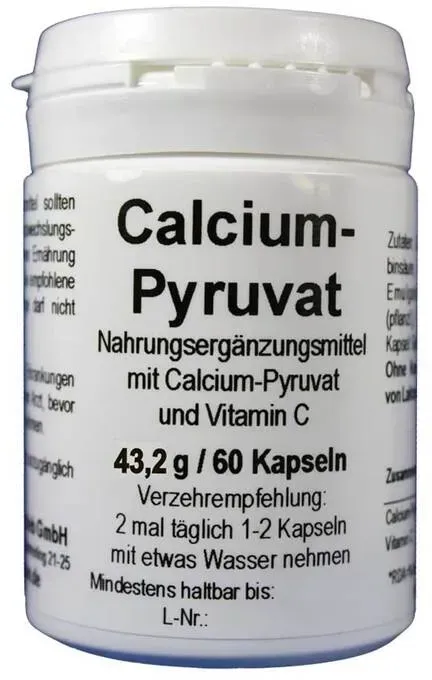 Kategorie: Sportnahrung - BIOTECH - GTIN:5999076255702 - FüR EINEN GESUNDEN LEBENSSTIL: Calcium trägt zum normalen Energiestoffwechsel, einer normalen Muskelfunktion und der normalen Funktion von Verdauungsenzymen bei TAGESMENGEN: Enthält 2250 mg Calciumpyruvat pro Tagesdosis (davon - 338 mg Calcium; 1350 mg Pyruvat). VERWENDUNG: Nehmen Sie 3x1 Kapseln täglich mit einem Glas Wasser vor den Mahlzeiten ein. WIR EMPFEHLEN: Sowohl für Männer als auch für Frauen. Für alle, die neben einer Formel zur Gewichtskontrolle eine weitere Nahrungsergänzung suchen. SORGFäLTIG AUSGEWäHLTE ZUTATEN: Hergestellt aus hochwertigen Zutaten zur Unterstützung Ihrer Fitnessziele. - 15,90 Euro bei Amazon Marketplace Health & Personal Care - gefunden von billiger.de Dieses Angebot bietet 60 Kapseln Pyruvat zu einem fairen Preis, ideal für eine regelmäßige Einnahme. ![]() ![]() PYRUVAT 500 - Kapseln 60 eBay St PZN04173022