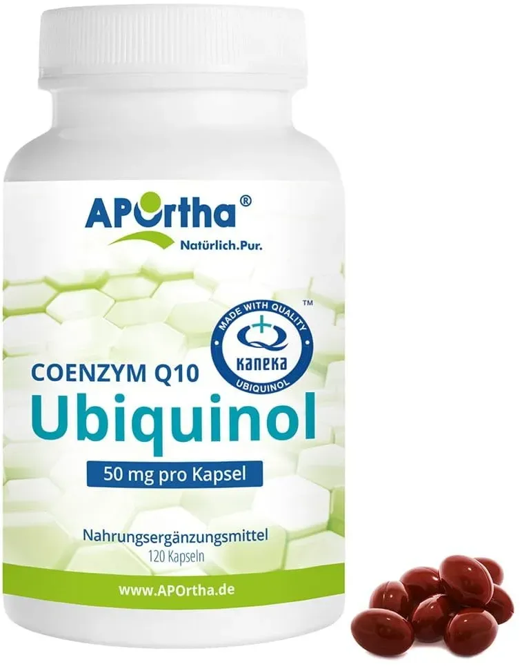 0.50 eur / 1st - 'Wohlbefinden Vitamine & Mineralien','Wohlbefinden Ernährung','Arzneimittel-Gesundheit' Vitamine & Ergänzungen - EAN:4250556512670 - Q10 Ubiquinol 200 mgVitabay Ubiquinol R 200 mg - 60 Softgels vereint die fortschrittlichste Form des Coenzyms Q10 für optimale Gesundheitsvorteile. Jedes Softgel enthält 200 mg hochwertiges Ubiquinol, die aktive, nicht oxidierte Form von Coenzym Q10. Diese Form wird vom Körper sofort verwendet und ist besonders effektiv in der Absorption, wodurch eine geringere Dosis benötigt wird, um die gleiche Wirkung wie herkömmliches Coenzym Q10 zu erzielen.Premium Bioaktive Inhaltsstoffe: Natürliches Coenzym Q10 in hoher Reinheit: Hergestellt unter Einhaltung strenger Qualitätsstandards, bietet dieses Coenzym Q10 eine bioidentische Form, die der körpereigenen sehr nahe kommt. Verbesserte Bioverfügbarkeit: Mit einer 3- bis 8-fach höheren Bioverfügbarkeit im Vergleich zu traditionellen Q10-Formen, sorgt dieses Produkt für eine effizientere Aufnahme und Nutzung im Körper. Wichtige Rolle im Körper: Coenzym Q10 ist ein wesentlicher Bestandteil zahlreicher biologischer Prozesse und unterstützt eine Vielzahl von Körperfunktionen. Optimale Dosierung pro Kapsel: Jede Kapsel enthält eine wirksame Menge an Coenzym Q10, um die täglichen Bedürfnisse zu unterstützen.Optimierte Formulierung: Gelöst in hochwertigem Leinsamen-Öl, das ohne den Einsatz von Pflanzenschutzmitteln angebaut wird, bietet dieses Produkt eine ideale Bioverfügbarkeit in einer ... Dieses Produkt von APOrtha bietet 50 mg Ubiquinol in 120 vegetarischen Kapseln, ideal für eine längere Anwendung. ![]() ![]() APOrtha Kaneka Ubiquinol Coenzym Q10 50 mg 120 Kapseln, Premium CoQ10 hochdosiert 50mg für 2 Monate, Hohe Bioverfügbarkeit durch bioaktives Ubiquinol, 2-fach Patentierter Rohstoff