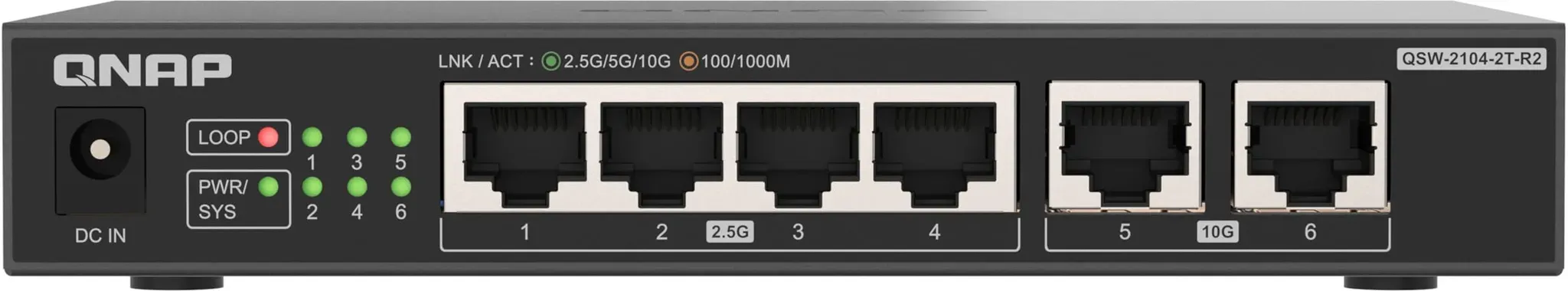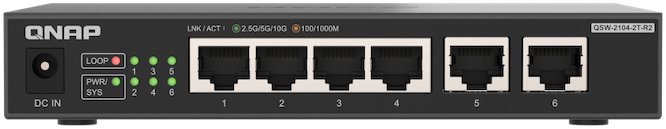 Auf Lager Versand durch AmazonQNAP Switch QSW-2104-2T-R2 | 2X 10GbE, 4X 2.5GbE, Plug & Play Unmanaged, Fanless