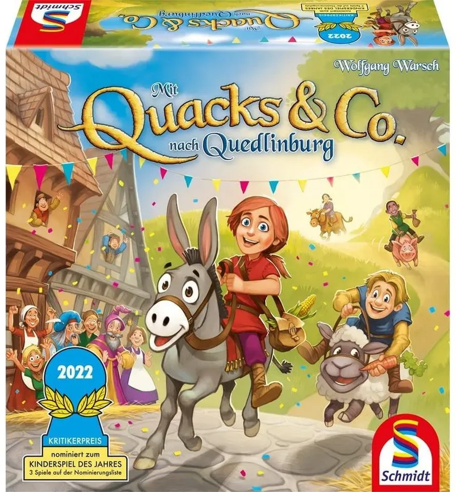 40 Händlerangebote bei billiger.de - Kategorie: Gesellschaftsspiele - Schmidt Spiele - Habt ihr schon mal von der Stadt Quedlinburg im Harz und ihrem berühmten Markt gehört, der dort alljährlich stattfindet? Jedes Jahr, am Tag vor dem Markt, wird traditionell das große Wettreiten der Kinder der Stadt veranstaltet. Schön, dass auch ihr dieses Mal mit dabei seid! Mit dem Esel Quacks und seinen Freunden geht ihr an den Start und lockt die Tiere mit dem richtigen Futter vorwärts. Aber wir reden hier nicht von ganz normalem Tierfutter. Nein, unser Futter ist ein bisschen wunderlich. Nicht immer bringt es eure Vierbeiner gleich weit voran. Da heißt es, die richtige Kombination finden, um möglichst schnell zu sein. Aber manchmal hat sich auch ein Traumkraut in euren Beutel verirrt und euer Tier gönnt sich lieber eine kleine Pause... Unterwegs sammelt ihr Rubine, mit denen ihr euch neues vielleicht noch besseres Futter kaufen könnt. Wer bringt sein Tier mit einer guten Mischung aus Taktik und Glück schnell voran, kommt als Spitzenreiter ins Ziel und gewinnt am Ende den goldenen Kessel? Mit Quacks & Co. nach Quedlinburg, 2 bis 4 Spieler, 25 Min. Schmidt Spiele Mit Quacks & Co. nach Quedlinburg, Brettspiel, (e), 25 min Schmidt Spiele Mit Quacks & Co. nach Quedlinburg. Produkttyp: Brettspiel, Empfohlenes Alter in Jahren (mind.): (e), Spielzeit: 25 min - GTIN:4001504406301 ![]() ![]() Schmidt Spiele - 40630 Mit eBay Quacks & Co. nach Quedlinburg