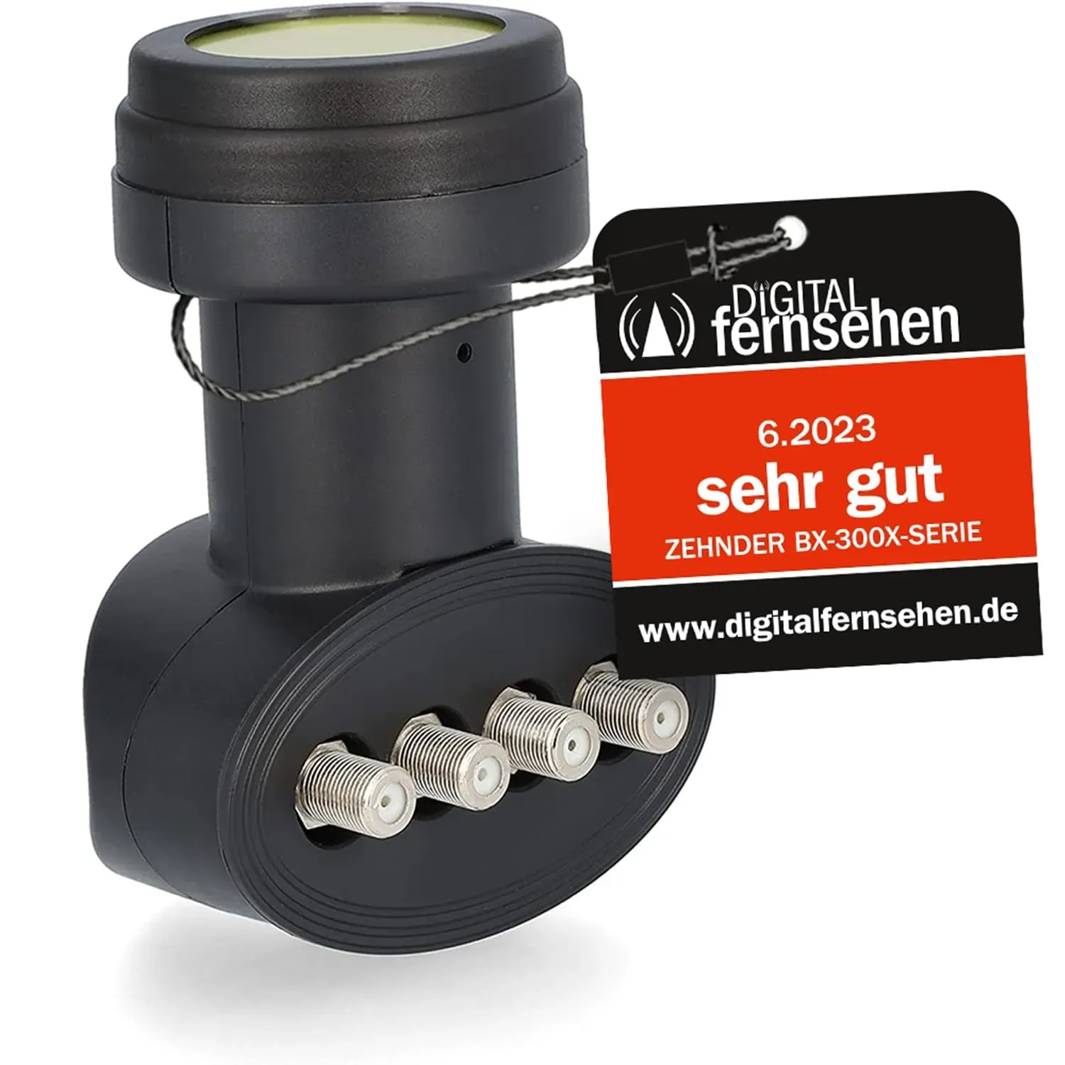 Gesamtsortiment IT + Multimedia TV + Heimkino TV Empfangstechnik LNB TV-Antennen & Zubehör - EAN:5453002616819 - Der Inverto IDLP-QDL413-PREMU-OPN Quad Premium LNB ist eine hochmoderne Lösung für den Empfang von Satellitensignalen in Full HD und 4K. Mit einem Feed-Durchmesser von 40 mm bietet dieses LNB eine hervorragende Signalqualität und ist mit einem integrierten LTE-Filter ausgestattet, der Störungen durch Mobilfunknetze minimiert. Das typische Rauschmass von 0,2 dB sorgt für eine optimale Signalübertragung, was es zu einer idealen Wahl für anspruchsvolle Nutzer macht, die Wert auf hohe Bildqualität legen. Der Quad-Typ ermöglicht den Anschluss von bis zu vier Receivern, was eine flexible Nutzung in verschiedenen Wohnbereichen ermöglicht. Die kompakte Bauweise und das geringe Gewicht machen die Installation einfach und unkompliziert. - Integrierter LTE-Filter zur Minimierung von Störungen - Typisches Rauschmass von 0,2 dB für optimale Signalqualität - Quad-Design ermöglicht den Anschluss von bis zu vier Receivern - Geeignet für Full HD und 4K Empfang. - gefunden von Kelkoo Das ZEHNDER Quad LNB bietet eine gute Leistung mit LTE-Abschirmung und UV-Schutz für 4K-Empfang. ![]() ![]() [ Test 2X SEHR GUT *] ZEHNDER Quad LNB, LTE Abschirmung, Sun Protect UV Schutz, Digital 4Fach 4K LNB für 4 Teilnehmer, für Fernseher Sat Receiver, HD LNC für Satellitenschüssel Satelliten Schüssel