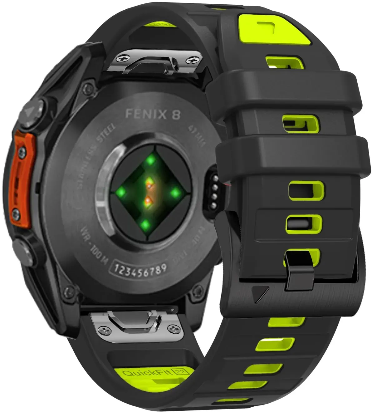 Zustand: Neu - Uhrenarmbänder Uhrenarmbänder für Sportmessgeräte - aceyoon - 22MM_GAR_QUICK_FIT_BAND_BK+GN 22MM_GAR_QUICK_FIT_BAND_BK+GN - - Kompatible Modelle22mm Quick-Fit Silikon Armbänder kompatibel mit Garmin Quatix 7 pro/Fenix 7/Fenix 7 Pro/Fenix 6/Fenix 6 Pro/Fenix 5/Fenix 5 Plus, kompatibel mit Garmin Instinct/Forerunner 935 945/Approach S60 S62/Descent G1/EPIX Gen2/MARQ Series. Schnelle Ein Klick InstallationWenn Sie das motre Armband für Garmin fenix 7 pro anbringen, drücken Sie den Knopf und verriegeln Sie das für Garmin Fenix 7 Armband an der Uhr, um die Installation abzuschließen. Es sind keine Werkzeuge oder zusätzliche Schrauben erforderlich. Einfach zu installieren und zu entfernen. Komfortabel und Langlebigaceyoon für Garmin Forerunner 935 Armband ist aus hochwertigem Silikon gefertigt, komfortabel, weich und rutschfest, leicht, wasserdicht, schweißresistent, nicht kalt im Winter, nicht stickig im Sommer. Verstellbare GrößeDie verstellbare Länge für Garmin Instinct Armband 22mm passt sich dem Handgelenk ''6.7-8.6'' (170mm-220mm) der meisten Menschen an, sowohl bei Männern als auch bei Frauen. Egal, ob Sie sportlich, modisch oder lässig sind, Sie werden immer gut aussehen. Lieferumfang & AnwendungIm Paket enthalten: 2× Ersatzarmbänder, kompatibel mit Garmin Fenix/Quatix Serie. Ideal für den Austausch oder zur individuellen Anpassung. Dank des bequemen und langlebigen Designs perfekt für Sport, Outdoor-Aktivitäten und den täglichen Gebrauch. - ... Dieses AISPORTS Silikonarmband ist eine preiswerte und vielseitige Option für ein Quick Fit Uhrenarmband, das mit der Quatix 7 Pro kompatibel ist. ![]() ![]() AISPORTS Kompatibel mit Garmin Quatix 7 Pro/7/6/5 Armband aus Silikon, 22mm Quick Fit Uhrenarmband Weiches Silikonarmband Ersatzarmband für Garmin Fenix 8 47mm/E 47mm/7/7 Pro/6/6 Pro/5/5 Plus