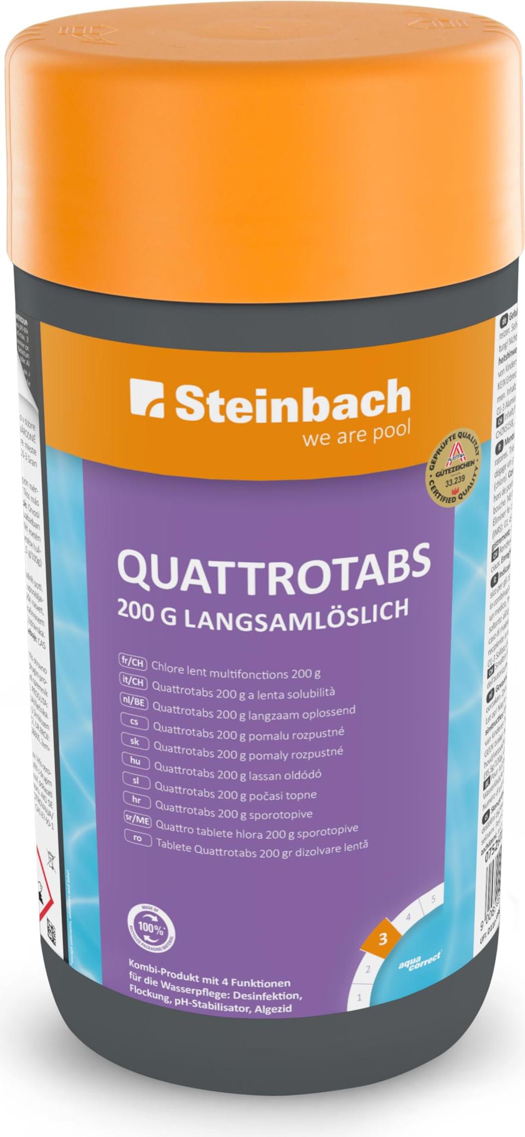 Quattrotabs META PreisvergleichMit dem Meta-Preisvergleich suchen Sie gleichzeitig bei den großen Preisvergleich Portalen!Jetzt live Suche nach quattrotabs starten! Quattrotabs KaufberatungQuattrotabs sind langsamlösliche Multifunktionstabletten (200 g pro Tablette) der Marke Steinbach Pool Professional für die Chlor-basierte Pflege privater Schwimmbäder, die Desinfektion, pH-Stabilisierung, Flockung und Algenbekämpfung in einem Produkt vereinen.[1][2][3] Wichtige Beachtenswertes bei Kauf und Anwendung