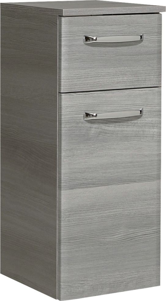 6 Händlerangebote bei billiger.de - Kategorie: Bad-Hängeschränke - Pelipal - Der Pelipal Bad-Hängeschrank der Serie Quickset 328 überzeugt durch sein ansprechendes Design in Kombination mit ausgezeichneter Funktion. Aufgrund der Farbgestaltung in Graphit Struktur quer fügt sich der Badezimmerschrank gut in bestehende Badeinrichtungen ein. Schmaler Hängeschrank mit 2 Einlegeböden ideal für kompakte Badezimmer Der schlanke Badezimmerschrank ist 30 cm breit und bietet aufgrund seiner Höhe von 70 cm genügend Platz für Ihre Badezimmerartikel, Hygiene- und Pflegeprodukte. Mithilfe einer lässt sich der Schrank leicht öffnen. Mit insgesamt 2 Einlegeböden aus Glas können Sie den Stauraum ganz individuell einteilen und sorgen so für Ordnung im Badschrank. Der Schrank ist außerdem mit einer Softclose-Funktion ausgestattet und verhindert so ein abruptes schließen. Pflegeleichte Oberflächen Der Hängeschrank beeindruckt nicht nur durch seine Anwendbarkeit, sondern auch durch seine hervorragende Qualität. Der Korpus ist aus Melamin und Folie gefertigt und in der Farbe Graphit Struktur quer gehalten. Die Fronten sind in der Farbe Graphit Struktur quer und bestehen aus Melamin und Folie. Der Badezimmerschrank kann mühelos und einfach mit einem feuchten Tuch gereinigt werden. Dieses Produkt wird zerlegt geliefert. Die Montage erfolgt unkompliziert mit der beiliegenden Anleitung. - GTIN:4017026072467 Ein sehr preiswerter Unterschrank, der eine gute Basis für die Badgestaltung bietet. ![]() Pelipal Unterschrank Quickset 328 1 Tür1 Schubkasten