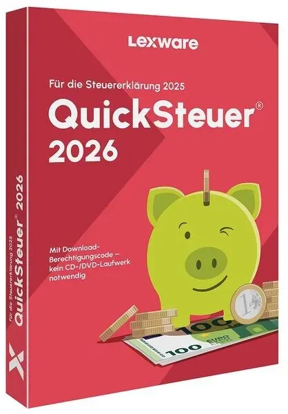 Zustand: Neu - Steuern - Lexware Haufe-Lexware - - - Für die Erstellung und Abgabe von bis zu 3 Steuererklärungen - geeignet für Windows 11 Die praktische Steuererklärungssoftware mit einer übersichtlichen Benutzeroberfläche hilft Schritt für Schritt die Steuererklärung zu erstellen - ohne Behördendeutsch und Formulardschungel QuickSteuer enthält nicht nur eine vorausgefüllte Steuererklärung, sondern auch einen Belegmanager, einen Elster-Assistenten & alles, was für amtliche Formulare & Steueranlagen benötigt wird Die Lexware Steuersoftware hilft mittels Elster-Assistent die Daten an das Finanzamt zu übermitteln, während im Belegmanager alle Belege sicher und übersichtlich verwaltet werden können Download-Berechtigungscode - kein CD-/DVD-Laufwerk notwendig - Verkäufer: Amazon Media EU Sarl im amazon.de Marketplace Dies ist das günstigste Angebot für die Standardversion von QuickSteuer 2026 und somit ideal für preisbewusste Nutzer. ![]() LEXWARE QUICKSTEUER 2026 - [PC]