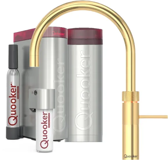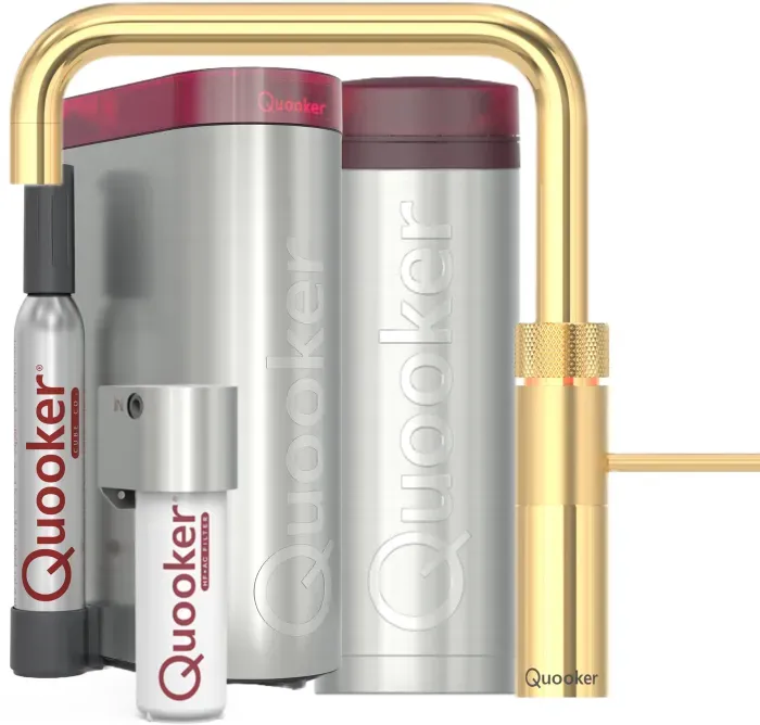Kategorie: Küchenarmaturen - quooker deutschland gmbh - GTIN:4250548718554 - Quooker Fusion Square mit PRO3 Reservoir & CUBE gold **inkl. CUBE Filter Starter Paket** Mischbatterie und Kochend-Wasserhahn in Einem Erhalten Sie alles aus einem Hahn: kochendes, warmes und kaltes Wasser, und in Kombination mit dem CUBE von Quooker, auch gekühltes, gefiltertes sprudelndes und stilles Wasser. Der Fusion Gold mit einer Schicht aus 24 Karat Gold bringt sofort Glanz auf Ihre Arbeitsplatte. Er ist eine Mischbatterie und ein Kochend-Wasserhahn in einem, der in Kombination mit dem CUBE von Quooker auch gekühltes, gefiltertes sprudelndes und stilles Wasser gibt. Quooker Fusion vereint Kochend-Wasserhahn und Mischbatterie miteinander. Kaltes, warmes und kochendes Wasser aus einem einzigen, leicht und sicher bedienbaren Hahn mit 24-karätiger Goldbeschichtung Kombinieren mit Gold Mit dem Quooker Gold holen Sie sich einen echten Blickfang ins Haus, der in jeder Küche wieder anders aussieht. In einer weißen Küche sorgt er für Wärme und Stimmung, zu Schwarz sieht er edel aus... - 2872,00 Euro bei past-geraete.de - gefunden von billiger.de Diese Fusion Square Armatur in Gold mit PRO3 Reservoir und CUBE ist eine Top-Ausstattung für höchste Ansprüche. ![]() ![]() quooker deutschland gmbh Quooker Fusion Square mit PRO3 Reservoir & CUBE Gold 3FSGLDCUBE *inkl. 7 JAHRE GARANTIE*