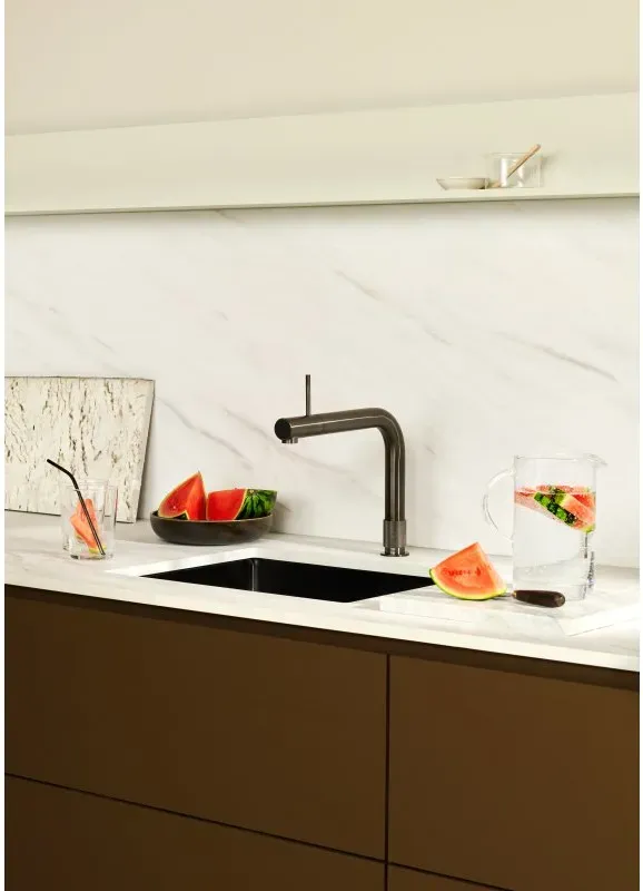 Kategorie: Küchenarmaturen - quooker deutschland gmbh - Quooker Front mit PRO3 Reservoir Gunmetal 3FRONTGME *inkl. * Quooker Front Ein markanter Blickfang in der Küche. Lupenrein, industriell und ergonomisch. Das Modell Quooker Front liefert warmes, kaltes, 100 C kochendes sowie gekühltes sprudelndes und stilles Wasser und hat an der Vorderseite des Auslaufs eine neue Warm- und Kaltwasserbedienung. Der Front ist in zwei Ausführungen erhältlich, Edelstahl sowie Schwarz und kann mit jedem Quooker-Reservoir kombiniert werden Das formvollendete Design fällt sofort ins Auge: nüchterne Röhrenform, schlicht, minimalistisch, hochwertig und gleichzeitig unverwechselbar. Im Gegensatz zu anderen Quooker-Wasserhähnen befindet sich der Bedienhebel für warmes und kaltes Wasser an der Oberseite, und zwar ergonomisch und bequem vorne am Hahn, nah am Auslauf. Das macht den Front zu einem markanten Blickfang in der Küche. Kombinieren lässt er sich mit jedem Reservoir. Wie auch bei den anderen Quooker-Wasserhähnen muss der geriffelte... - 1432,00 Euro bei past-geraete.de - gefunden von billiger.de Für Liebhaber des Vintage-Looks ist diese Fusion Round Armatur in Messing Patina mit PRO3 Reservoir eine stilvolle Wahl. ![]() ![]() quooker deutschland gmbh Quooker Fusion Round mit PRO3 Reservoir Messing Patina FNRPTB PRO3 *inkl. 7 JAHRE GARANTIE*