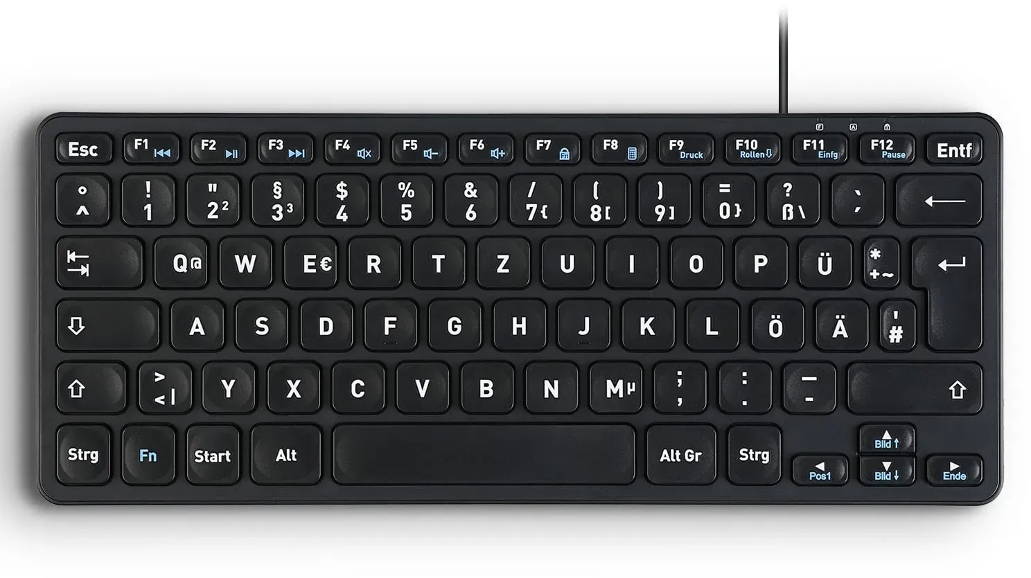 Zustand: Neu - Tastaturen - MediaRange - MROS112 - EAN: 4260664870128 - USB TASTATUR MIT KABEL: Diese kabelgebundene Tastatur überzeugt durch solides und komfortables Design, funktionelle Eigenschaften und bietet höchste Produktivität für für sämtliche Anwendungen im Büro oder Zuhause TASTATURLAYOUT: Das deutsche QWERTZ-Layout (DE/AT/CH) mit 78 ultraflachen Tasten eignet sich sowohl für Links-, als auch Rechtshänder. Die Tastenhöhe beträgt lediglich 3mm PLUG & PLAY ANSCHLUSS: Die Verbindung der Computer-Tastatur erfolgt schnell und einfach dank Plug&Play per USB 2.0 Anschluss. Die Kabeltastatur ist mit sämtlichen gängigen Betriebssystemen kompatibel und sofort einsatzbereit (kein zusätzlicher Treiber erforderlich) SPRITZWASSERGESCHÜTZT: Dank spritzwassergeschützter Ausführung bleiben kleinere Spritzer von Flüssigkeiten bei dieser PC-Tastatur ohne Folgen und machen dieses Gerät zu Ihrem zuverlässigem Alltagsbegleiter in jedem Anwendungsbereich LANGE HALTBARKEIT: Die MediaRange Tastaturen verfügen über eine Haltbarkeit von über 5.000.000 Tastenanschlägen und überzeugen auch bei intensiver Nutzung als leistungsstarkes, sowie zuverlässiges Arbeits-Tool - bei Amazon.de Diese kabelgebundene Mini-Tastatur mit USB-C Anschluss ist eine solide und preisgünstige Wahl für Nutzer, die eine einfache und zuverlässige Tastatur ohne Nummernblock suchen. ![]() ![]() Perixx PERIBOARD-422 Kabelgebundene kompakte Mini Tastatur, USB C Anschluss, ohne Nummernlock, Schwarz, QWERTZ