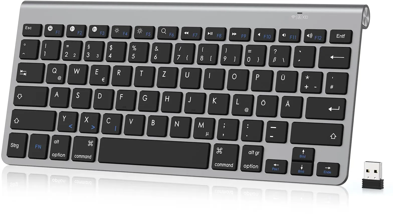 Zustand: Neu - Tastaturen Tastaturen für Tablet PCs - Hama - 00125136 - EAN: 4047443522955 - Kleine Bluetooth Tastatur faltbar: ultra-kompaktes, kabelloses Mini-Keyboard passt zusammengeklappt in jede Jackentasche und ist immer zur Stelle - die klappbare Mini-Bluetooth-Tastatur für alle Fälle Robust und gut geschützt: Bluetooth-Tastatur faltbar am Metallscharnier, das stabile Gehäuse schützt die Tasten mit Scherenmechanik vor äußeren Einflüssen - perfekte Reise-Tastatur für unterwegs Universal-Bluetooth-Tastatur für mobile Geräte: als iPhone-Tastatur, iPad Mini Keyboard, externe Tastatur Laptop, Tablet und Smartphone mit Tastatur nutzen - das portable Bluetooth-Keyboard ist ideal für Home-Office, mobile Arbeit, Studium, Uni, Zug Kabelloses Keyboard mit KI: Assist-Taste aktiviert den programmübergreifenden KI-Assistenten für effizienteres Arbeiten z.B. mit Texten, Präsentationen, Analysen u.v.m. Lieferumfang: 1x kabelloses Mini-Keyboard (66 Tasten, geräuscharm, lasergraviert), 1x USB-Ladekabel 80 cm, kompatibel mit Windows 11/10, Android 8.0, MacOS 11, iOS 14, iPadOS14 oder höher - bei Amazon.de Dieses Set aus kabelloser Tastatur und Maus bietet eine komplette Lösung mit 2.4G Funk und Mini USB Empfänger zu einem attraktiven Preis. ![]() ![]() Perixx PERIDUO-703B DE, Kabellose Tastatur und Maus Set, 2.4G Funkt mit bis zu 10m Reichweite, Mini USB Empfänger, Klavierlack Schwarz , QWERTZ DE Layout
