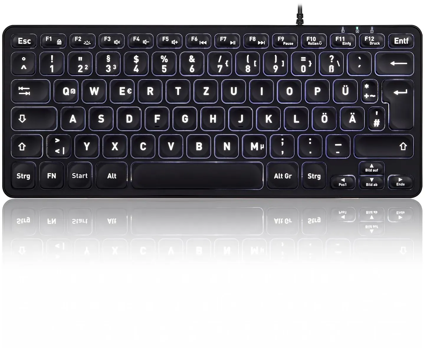 Auf Lager Versand durch AmazonMediaRange kabelgebundene Kompakt-Tastatur mit 78 ultraflachen Tasten, deutsches QWERTZ Layout, PC Tastatur mit Plug&Play USB 2.0 Anschluss, spritzwassergeschützt, Farbe schwarz