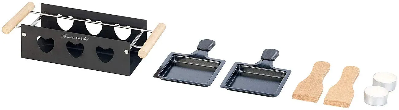 3 Händlerangebote bei billiger.de - Kategorie: Raclettes - Rosenstein & Söhne - Romantischer Raclette-Genuss für 2 Personen: überall, ganz ohne Strom Raclette hat immer Saison: ob gemütlicher Winterabend, lauer Sommerabend oder in der kalten Jahreszeit und an Silvester. Das gesellige Schweizer Nationalgericht erfreut sich zu jeder Zeit größter Beliebtheit. Ganz ohne Strom: Mit dem Mini-Raclette-Set müssen Sie nirgends mehr auf das gemütliche Essen verzichten. Betrieben mit 2 Teelichtern sind Sie völlig unabhängig vom Strom und schlemmen leckeres Raclette zu Hause, auf Reisen und beim Camping. Auf die Pfanne, fertig, los: Einfach die Teelichter anzünden, würzigen Käse, Kartoffeln, Brot oder andere Beilagen in die Pfanne geben und losbrutzeln. So genießen Sie viele schmackhafte Zutaten-Kombinationen und tolle Eigenkreationen. * Mini-Raclette-Set für 2 Personen * Ideal für zu Hause, auf Reisen, beim Camping, auf der Terrasse u.v.m. * Betrieb mit 2 Teelichtern: ohne Strom * Abnehmbare Raclettepfännchen: mit Antihaft-Beschichtung * Dekoratives ausgestanztes Muster im Herz-Design * Stabil und standfest, schwarz lackiertes Metallgestell * Maße Raclette: 244 x 106 x 65 mm, Gewicht: 545 g * Mini-Raclette-Set inklusive 2 Teelichtern, 2 hitzefesten Holz-Schabern, 2 antihaft-beschichteten Raclettepfännchen - GTIN:4022107371476 Dieses Raclette ist mit 15.99 Euro ein sehr preiswertes Angebot und ideal für Einsteiger. ![]() ![]()