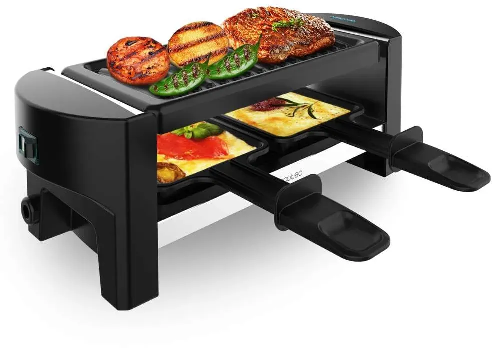 Kategorie: Raclettes - Rosenstein & Söhne - GTIN:4022107371476 - Ideal für zu Hause, beim Camping u.v.m. Stromloser Betrieb Klein und leicht zu verstauen 2 antihaft-beschichtete Pfännchen Stabiles Metallgehäuse mit ausgestanzten Mustern Mini-Raclette-Set für 2 Personen Abnehmbare Raclettepfännchen: mit Antihaft-Beschichtung Maße Raclette: 244 x 106 x 65 mm, Gewicht: 545 g Ideal für zu Hause, auf Reisen, beim Camping, auf der Terrasse u.v.m. Dekoratives ausgestanztes Muster im Herz-Design Betrieb mit 2 Teelichtern: ohne Strom Stabil und standfest, schwarz lackiertes Metallgestell Mini-Raclette-Set inklusive 2 Teelichtern, 2 hitzefesten Holz-Schabern, 2 antihaft-beschichteten Raclettepfännchen. Raclette für 2 Personen mit Kerzen - Außerdem relevant oder passend zu: Raclett mit Teelichter, Käsefondue, Pfannen, Fondue, Pfanne, Kocher, Grill, Kerze, Gerät, Ofen Bei Einzelbestellung senden wir den Artikel direkt im versandsicheren & versandoptimierten Original-Produktkarton. Das spart Verpackungsmüll und schont die Umwelt. - 17,07 Euro bei Amazon Marketplace Kitchen - gefunden von billiger.de Dieses Raclette ist mit 17.9 Euro ein sehr preiswertes Angebot und ideal für Einsteiger. ![]() ![]() Cecotec Raclette mit elektrischem Grill für 2 Personen Raclette Cheese&Grill 3200 Pocket. 320W, Edelstahl-Finish, Antihaft-Grillplatte, inklusive 2 Pfännchen und 1 Spachtel